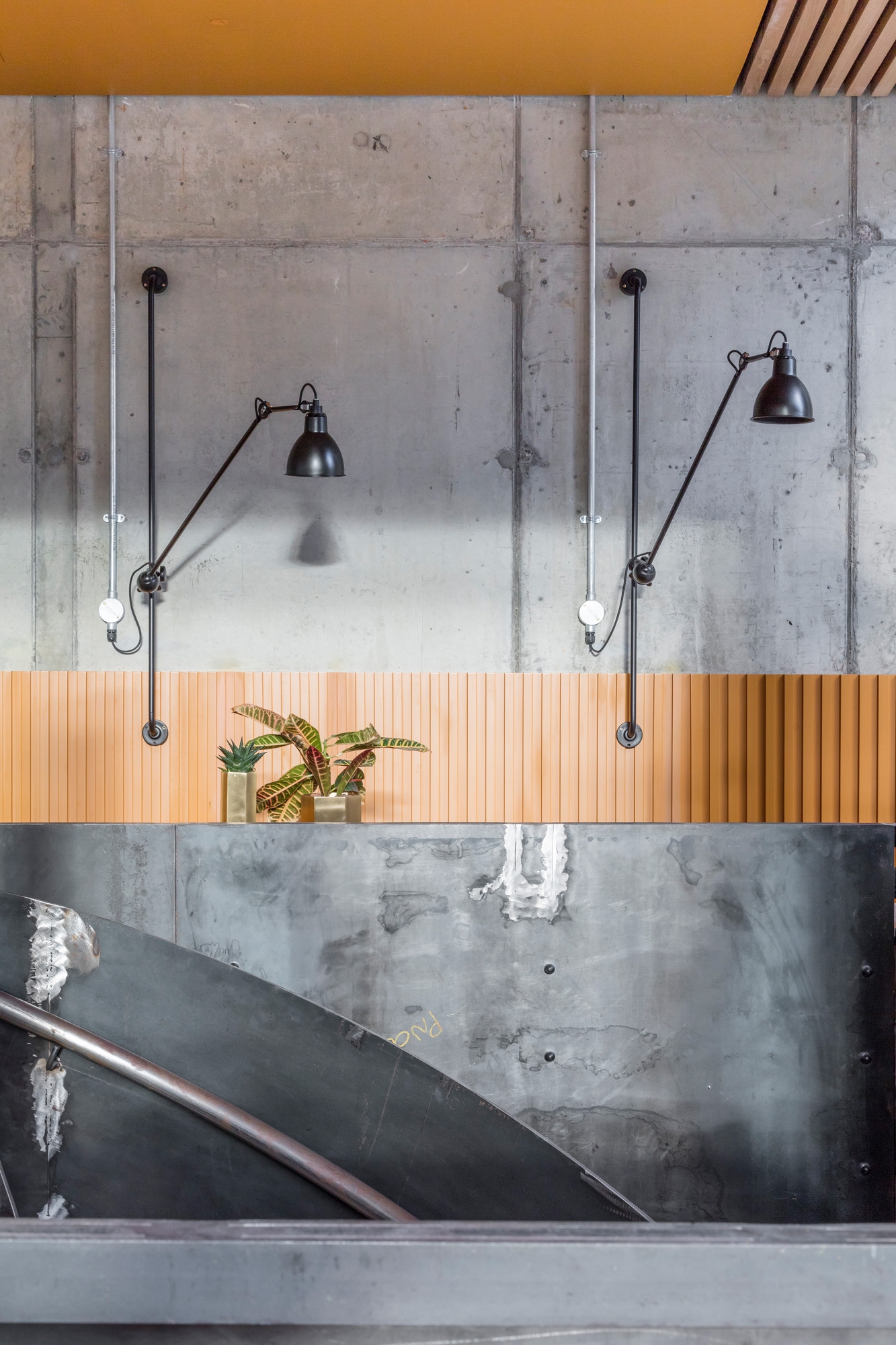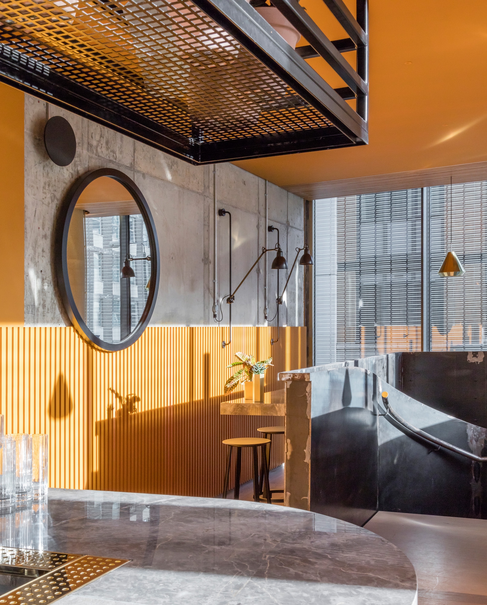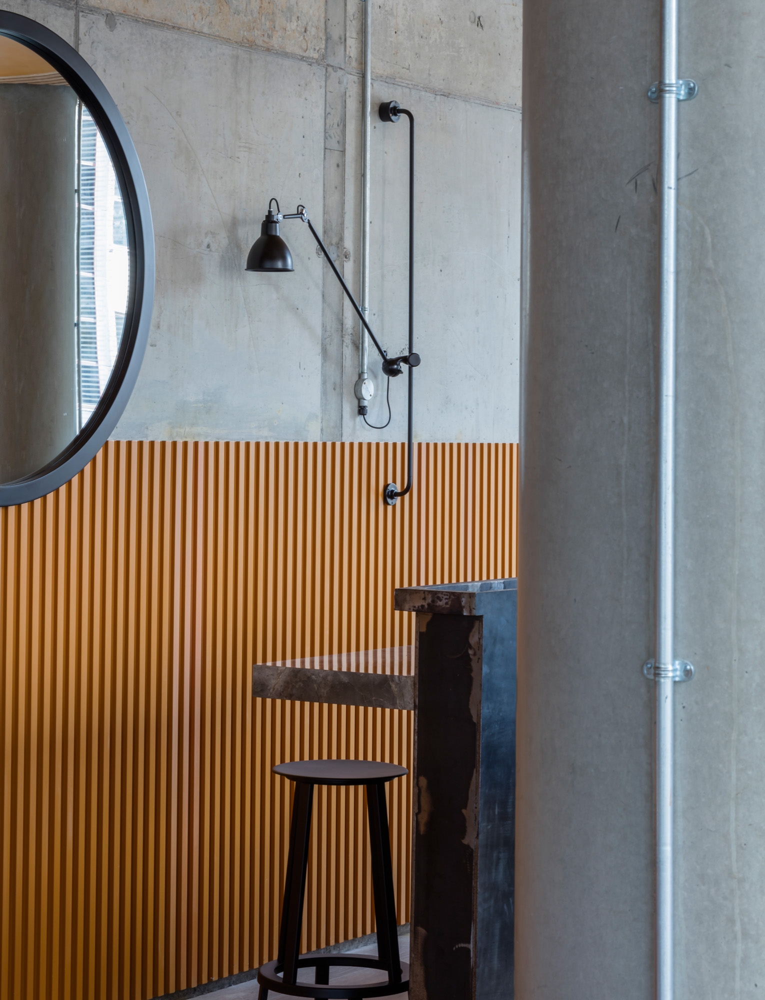 So we provided ample and flexible seating, power points and areas geared equally towards both privacy and the happenstance run-ins increasingly found in modern workspaces or a cafe. We postulated that while guests might feel comfortable working or socializing in a space seemingly appropriate for dining, they could feel less at ease dining in an environment geared towards co-working. Accordingly the aesthetic typology is unabashedly that of a restaurant.
