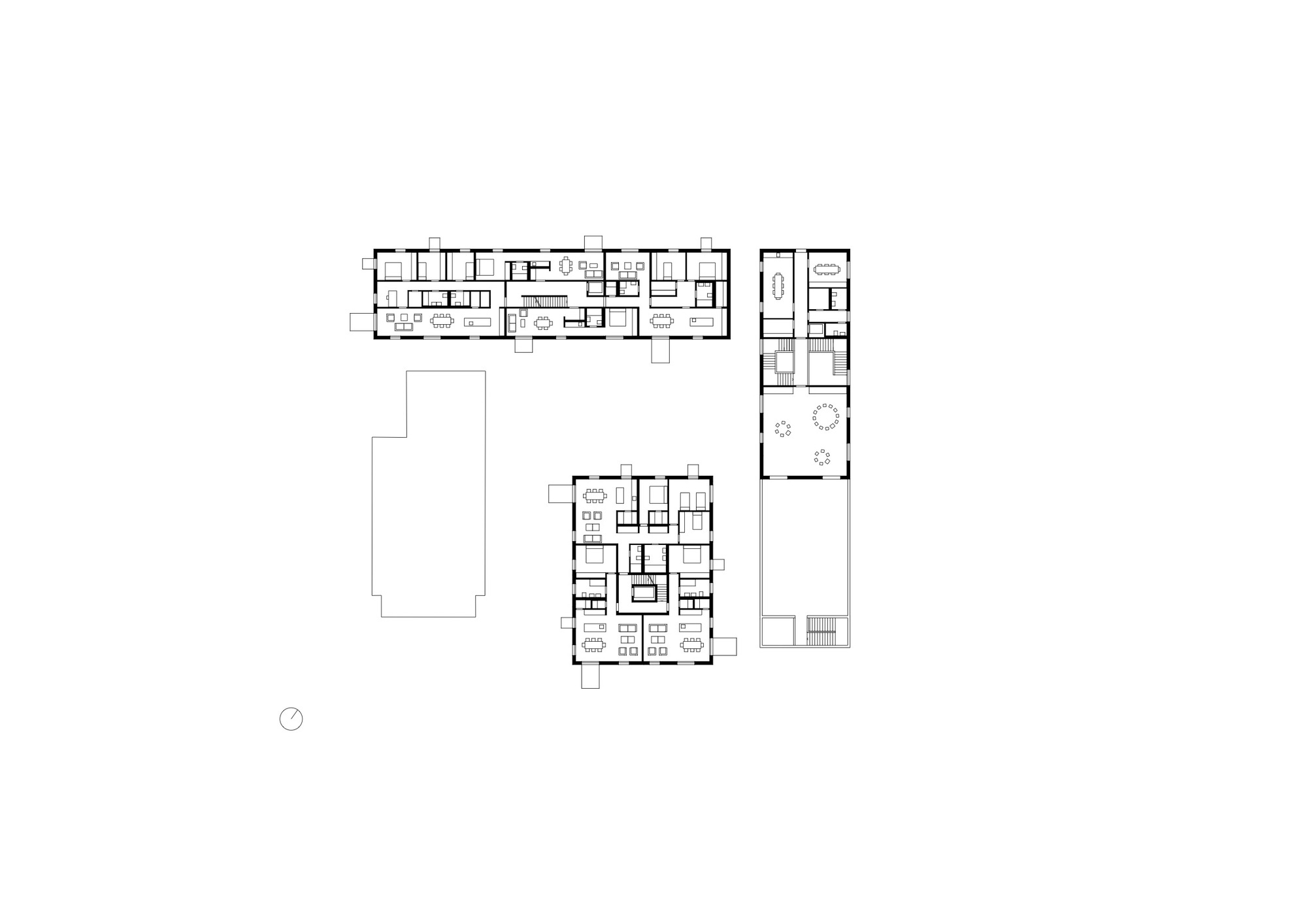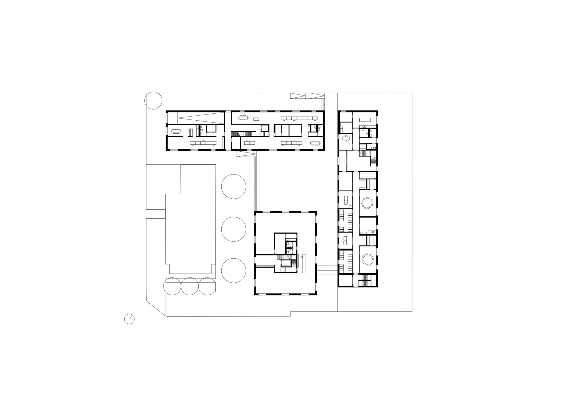 The quarter, consisting of three residential buildings, a daycare center, and a preexisting building, is an element of the transformation of the premises of the former Turley Barracks in Mannheim. The characteristic feature of the quarter, designed by Max Dudler, is a landmarks-protected barracks building dating from the imperial era. Emerging from an interplay with three monolithic new buildings by Max Dudler is an ensemble that integrates old and new. With their varied setbacks, the building shapes are tailored to the urbanistic situation. Interwoven with narrow lanes, the development is grouped around a new, central urban square. Elevated slightly, it structures the development’s open areas as places of social encounter. Found on the ground floors of the residential buildings alongside a daycare center is office space and a gallery, which enliven the urban environment. On a small scale, the quarter displays the qualities of a functioning town, with its dense mixture and proximity between diverse inhabitants and utilizations.