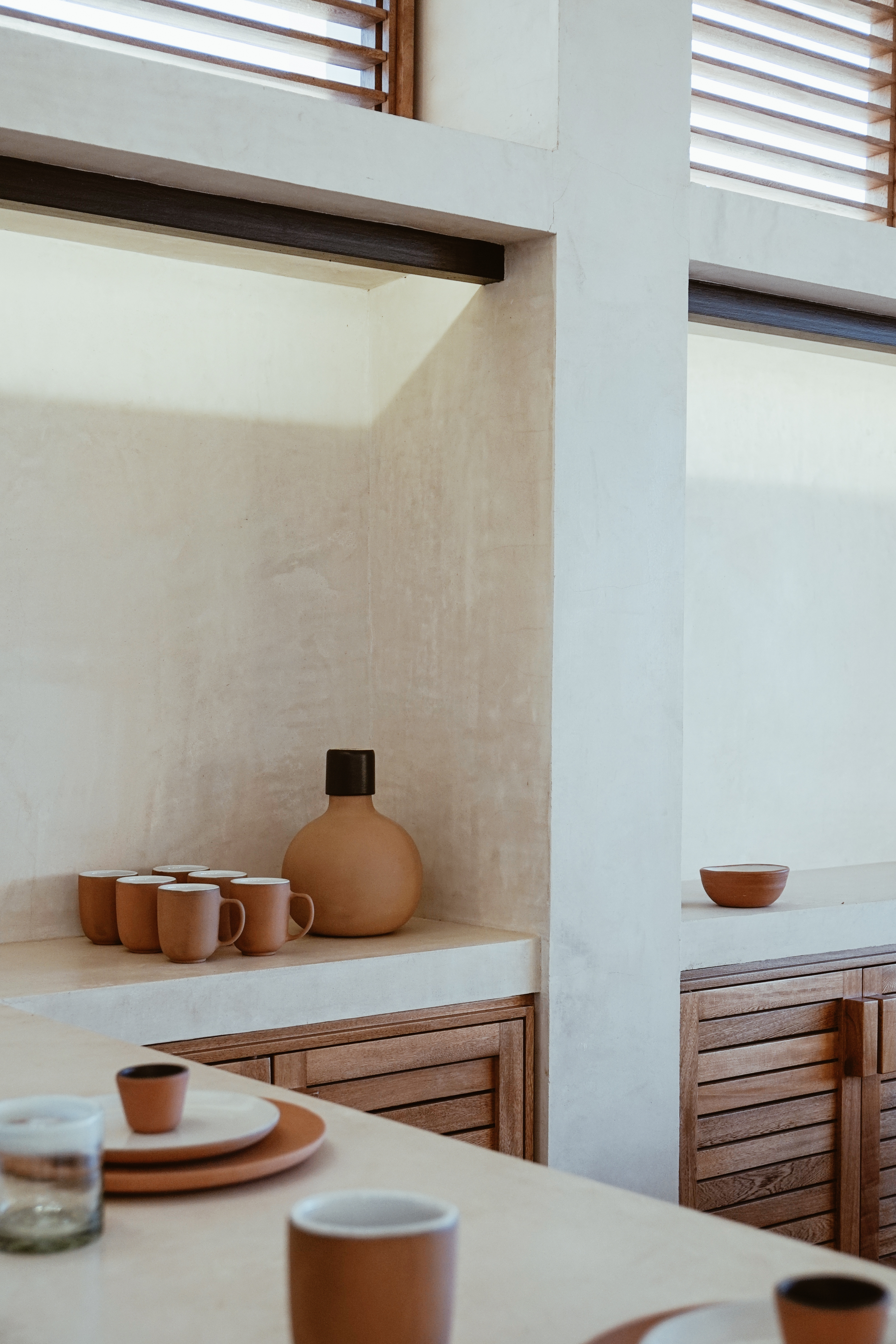 Villas Escondida are entirely built with a simple structure of reinforced concrete, block walls, cement, sand and ribbed slabs. This system has permitted flexible construction and a solid structure, resistant to the characteristic earthquakes that affect the area. The main finishing details of the external facades and the interiors are made with Chukun, flattened with fine sand cement and the suggestive local “Macuil” wood.