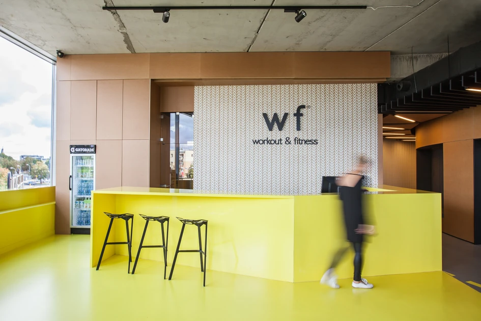 After implementing these changes the club became much more spacious and gained a pleasant changing area and wellness zone. In addition to the interior design, the SPACELAB architects also created a visual identity for the club with a logo and the brand name "WF | Workout & Fitness ".