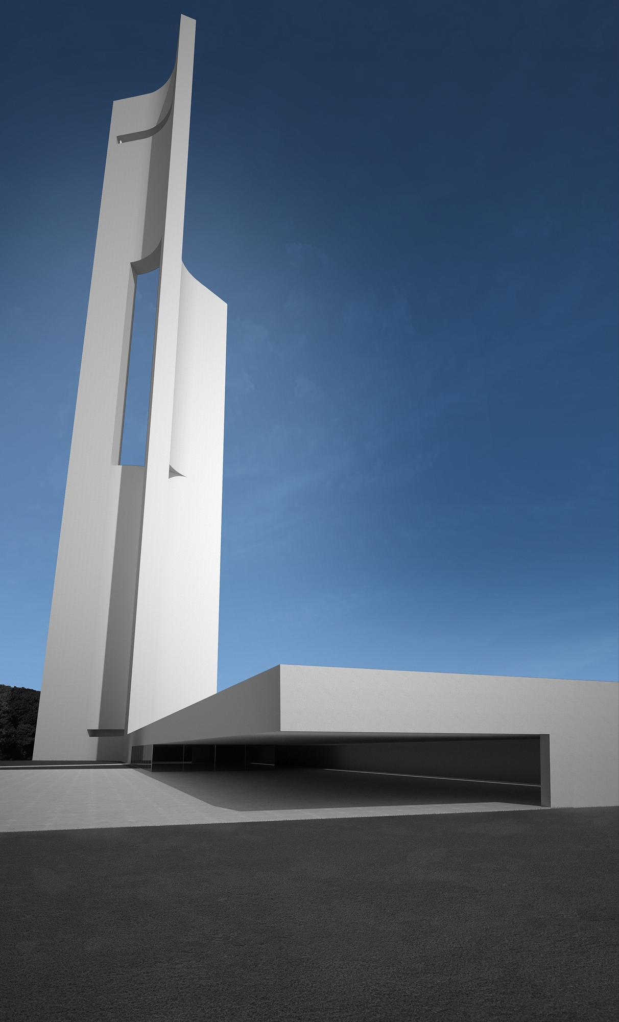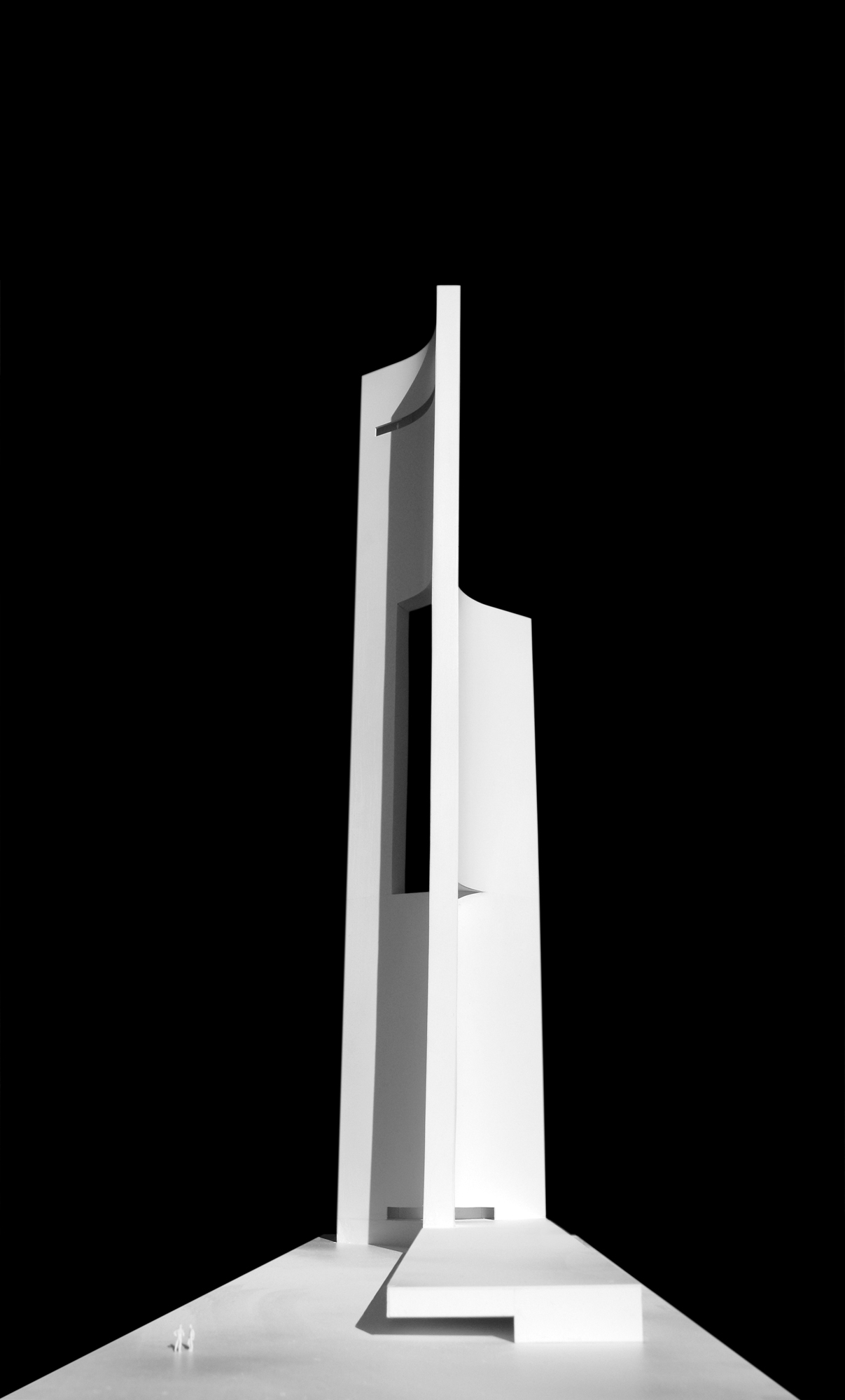 Un hito que modifica su proporción dependiendo del punto de vista y de la incidencia de la luz del sol; mostrando un elemento en constante evolución. Una torre esculpida por y para el viento.