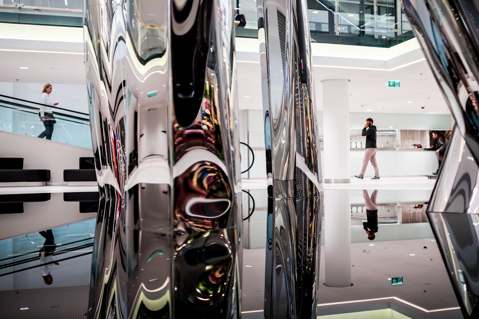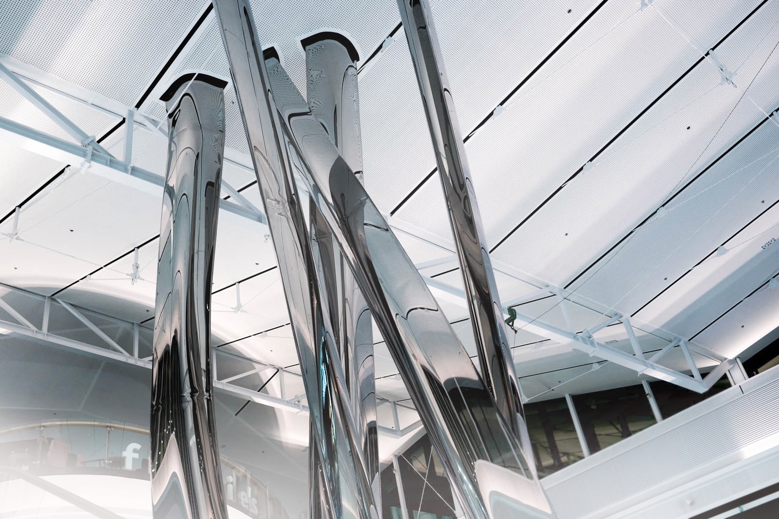 The WIR public sculpture, designed by Oskar Zięta, stands at the very centre of Galeria Północna in Warsaw. It’s the tallest sculpture in Warsaw and the first manifesto of FiDU technology made on such a scale. Its unique, steel form is a fusion of contemporary art with architecture and parametric design.