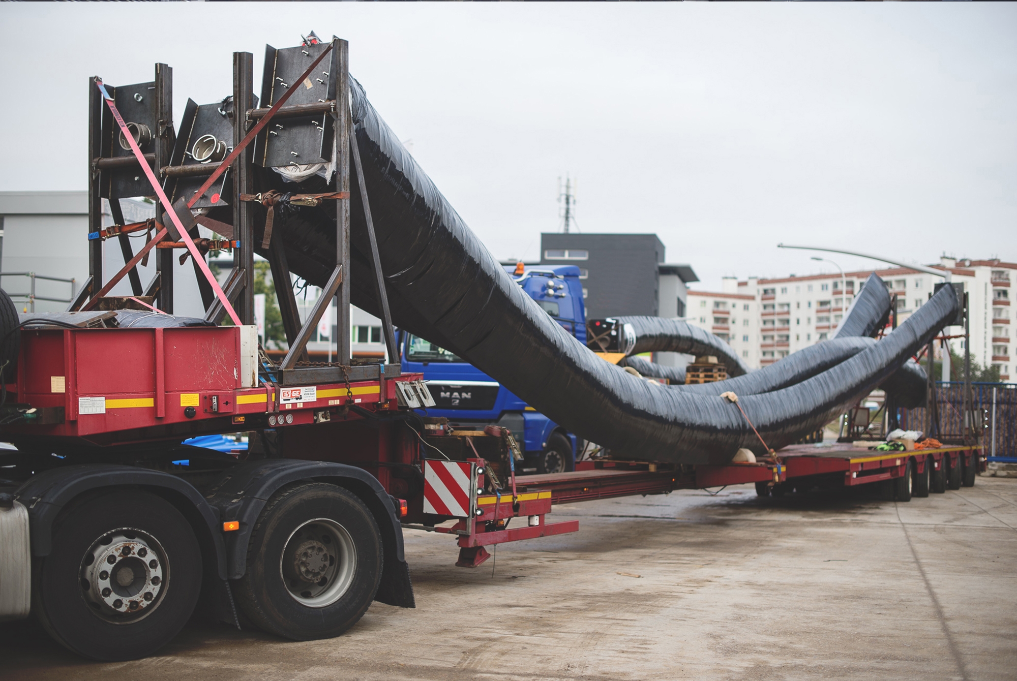 The Venetian steel used in the sculpture is a very delicate material, and required extremely careful handling during transport. Each profile piece was tightly packed to avoid any scratching. The secured pieces were then loaded onto lorries using a hoist and a forklift. Then, marked ‘Blown with love’, they left