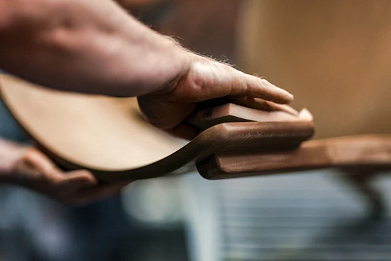 Almost without exception, the firm has been using beech and oak from the Canton of Jura for 90 years. “The trees we use are about one hundred years old and grow on a plateau,” explains managing director Marco Wenger. But he’s not the only one who knows the secrets of the company’s success: you immediately sense that a wealth of expertise is contained within these walls. Some of the craftsmen are the third generation of their families to work at the furniture factory. But many stages of the production process don’t just call for the necessary expertise: a good eye and a reliable instinct for the material are just as crucial. Accurate to within a millimetre, the craftsmen bend the wood into shape, sand the edges by hand and glue or screw the individual pieces together. The chairs are even upholstered here too, at the company’s in-house workshop. Before it is ready for delivery, every single piece of furniture passes through a multistage process in which some steps are done by hand, others by machine. And every single piece is still hand-checked for defects too – a policy that enables the company to keep its returns rate to a minimal 0.1 percent.