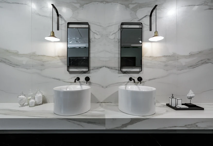 Florim’s highly covetable solution is facilitated by the versatility of its generously sized sheets whose dimensions range from 80x80cm to 160x320cm, their flexibility enhanced by a choice of three thicknesses – 6mm, 12mm and 20mm.