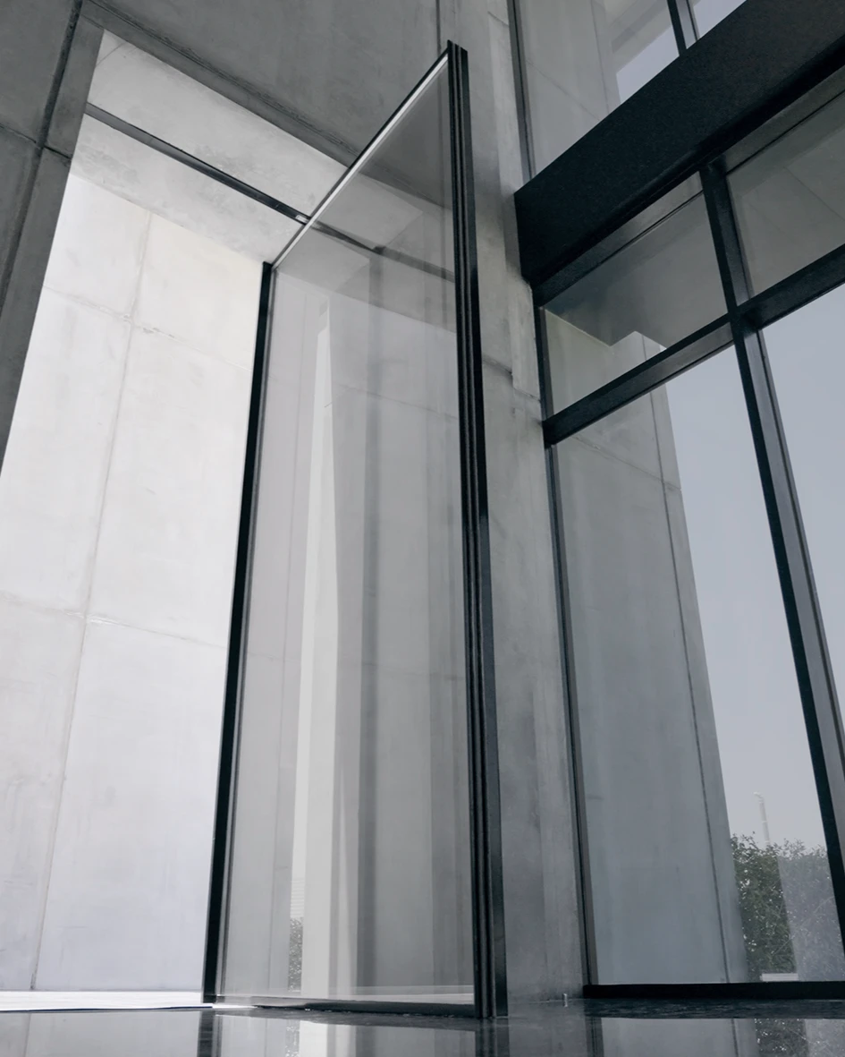 The new One offers design possibilities the old One couldn’t. First off, there’s the combination of the new One with TP-R, FritsJurgens Top pivot Reversed.This top pivot is mounted in the head jamb or ceiling instead of on the top of the door’s frame. Because of this placement and the lack of a piece of hardware in the door, you can opt for super thin door frames. Combine this with the new One, which is only 18 mm tall, and all of your door’s frames can be as minimal as 18 mm high.