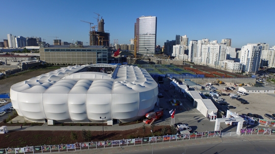 An air dome in Vienna demonstrates that textile solutions can also be the ideal choice for buildings other than huge, emblematic construction projects. Here, too, an existing structure was to be replaced, and a new building that would achieve a substantial reduction in energy use was called for. The architectural challenge for this three-court hall lay in the requirement to preserve the use of the existing technical fittings and machines. The contractor thus had to ensure the production of a membrane that would conform perfectly to the given dimensions: 46.76 x 36.83 x 10 metres. The fabric type 2(1) – art. 669 from Sattler Global was employed in the triple-layered shell construction. For its halls, the contracting firm PM Engineering S.r.l. of Milan conceived an external shell to protect against the weather along with two “floating” internal membranes, with each layer spaced slightly from the next. Advanced inner air conveyance prevents air from being blown onto the players and supplies the expansive interior with a steady current of warm air from above.