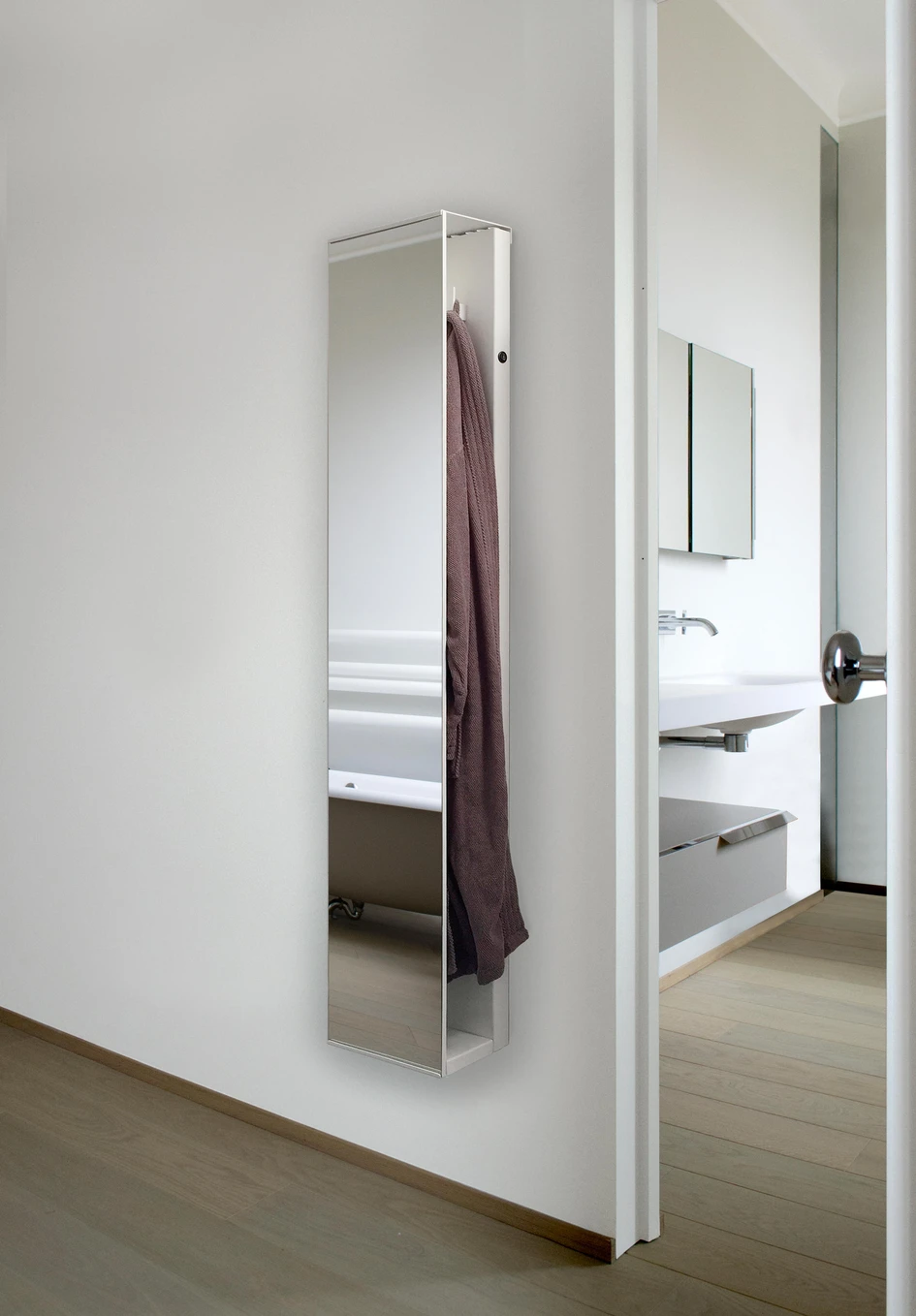 With their low weight and single-screw installation, hooks are a simple way to keep items exactly where they’re most needed. Rarely is this as important as a well-positioned towel hook, close enough to reach without exiting the wash space, yet far enough to avoid careless splashes or spray.But there’s more to a towel hook than just its positioning. For the luxury of a pre-warmed towel or robe, towel warming hooks like the slim Stick from Nordholm take up minimal extra bathroom space, yet Stick has two separate hooks to heat multiple towels at once. Alternatively, the Robe towel warmer from mg12 efficiently warms and protects two robes from spray with its fog-free mirror.