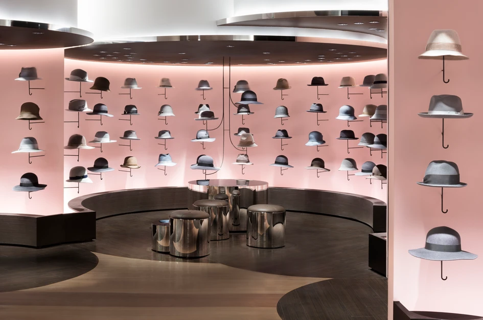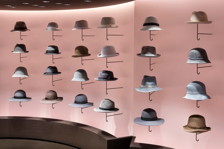 Over time, however, the lack of support pointed hooks provide can stretch and damage the material. AK47’s Tac hooks offer a choice of two wider forms to better hang hats and coats on, while the Crazy Head hook from Myyour anthropomorphises the form of a hat-filled hook for a characterful entranceway. nendo’s Hat Cloud design for a Japanese milliners, meanwhile, makes reference to the theatrical relationship between hat and umbrella, by curving the base of hat hooks.