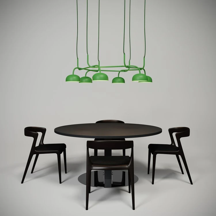 Meanwhile, the original Curve has been designed by Front for the 2018 renovation of Sweden's Nationalmuseum and was released last year for the general market. Consisting of curved tubular armatures and a hemispherical shade, the lamps can be playfully interwoven – just like a flower crown – into different chandelier configurations, enabling maximum creative flexibility in the workplace (or ultimately in any other space).