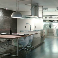 Citterio’s first Arclinea design was the revolutionary Italia of 1988, which brought features from professional kitchens to the home – deep, expansive worktops, tall, spacious units and two sinks (one for food preparation, the other for washing dishes). A new version created in 2000 incorporated a highly practical island. Other iconic Citterio designs, all mirroring the latest trends, include the romantic-looking Mediterranea (1992), the funky, colourful Florida (1995) and clean-lined, minimalist Ginger (1997). Then in 2002, came the radically open-plan Convivium kitchen, which challenged the convention of a separate room for cooking and dining. Accompanying this was his innovative idea, the Closet – a walk-in, made-to-measure unit for washing and storing food. Soon Arclinea kitchens came with an ever-expanding family of convenient accessories – snack bars, ceiling-mounted extraction hoods, extensive tables, subtle lighting systems…