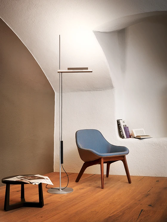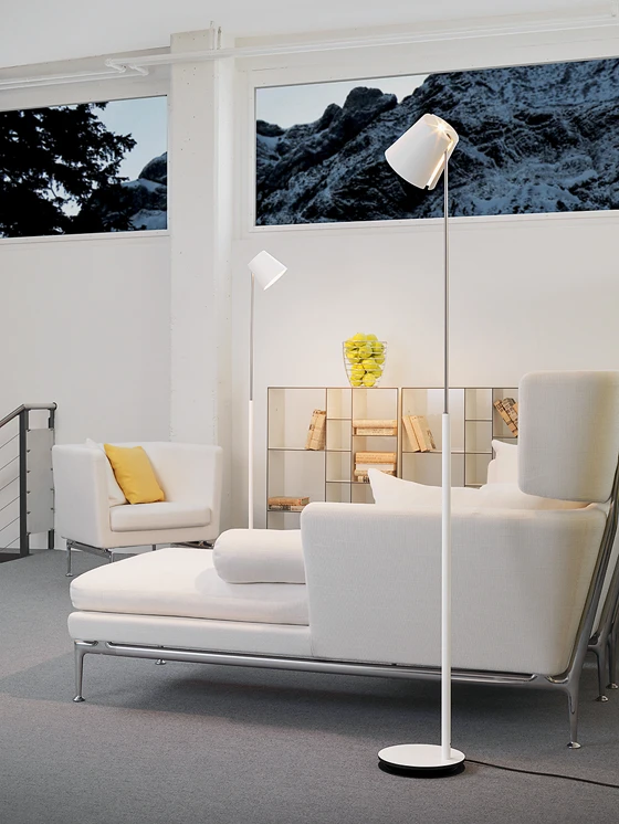 The next major step came hand in hand with the use of LEDs for private interiors. The energy-efficient light-emitting diodes, which provide high luminous efficacy but generate very little heat, enabled Baltensweiler to launch the ZETT reading lamp, the torch-like TOPOLED and the linear LET series. 2009 saw the advent of other technical innovations like the conductive ball-and-socket joint, the telescopic height adjustment mechanism and the magnetic contact.