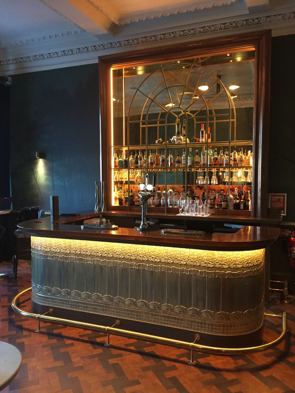Where four or five walls of texture might be deemed overwhelming, Lincrusta is being used as a furnishing finish to bring flashes of pattern that are then layered throughout a room with other textures. At the Crowne Plaza in Edinburgh, for example, the bar’s vertical surfaces are enveloped in Lincrusta’s Art Nouveau design – painted a deeply pigmented green and overlaid with a metallic effect – and teamed with an elegant wooden top and brass foot rail. A headboard covered in Elizabeth brings warmth to a bedroom in a private residential project in London and even a cooker hood might be the surface of choice – this was the case in a Chicago residential interior by Hawthorn Development where Lincrusta’s Italian Renaissance design was applied and the surface treated to suggest aged metal.