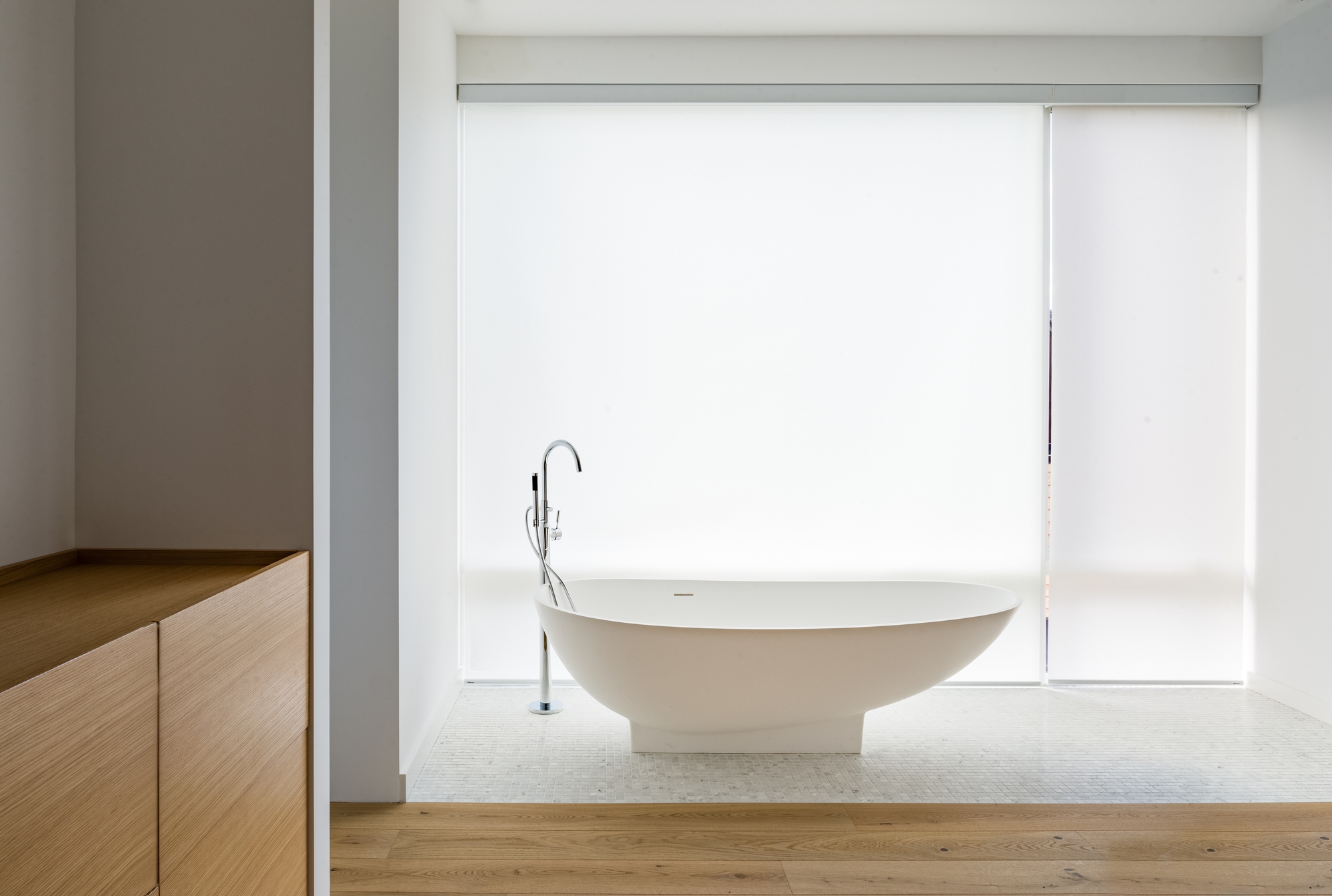 It might seem counter-intuitive, but it is even possible to have a bath with a view in a dense urban environment – even in a basement. House H, designed by KC Design Studio in Taipei, is located on the ground floor and basement of an existing apartment building. By creating a small number of precise, narrow, incisions, the architects have created a series of narrow patios. Filled with lush vegetation, these act as light-wells as well as visual screens between the different bedrooms and even their en-suite bathrooms.