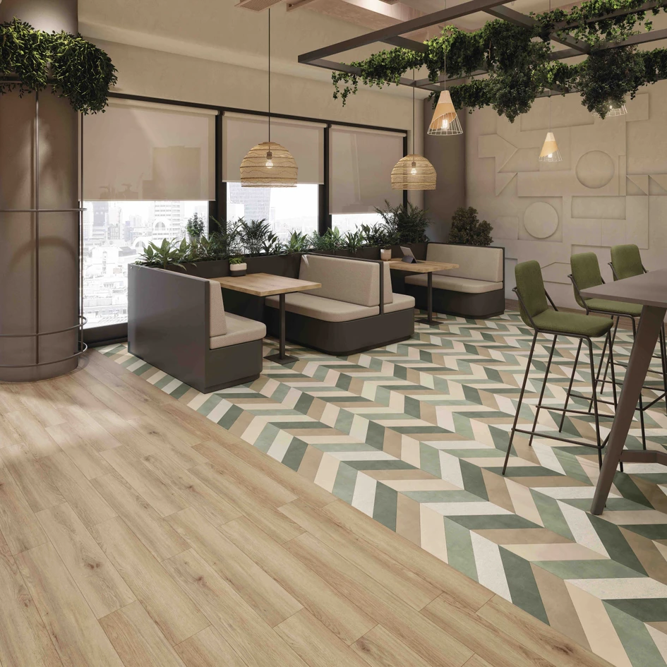 In short: everything is possible. This may not make the choice any easier, but at least more creative and exciting. What all products, installation patterns and design proposals have in common is their natural look with depth effect, in combination with all the advantages of LVT, which have been optimised once again for the entire collection. From the particularly durable wear layer to antimicrobial properties and acoustic options that put the sound of footfall quietly in its place.