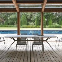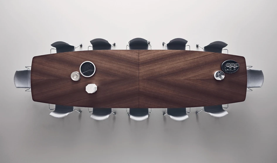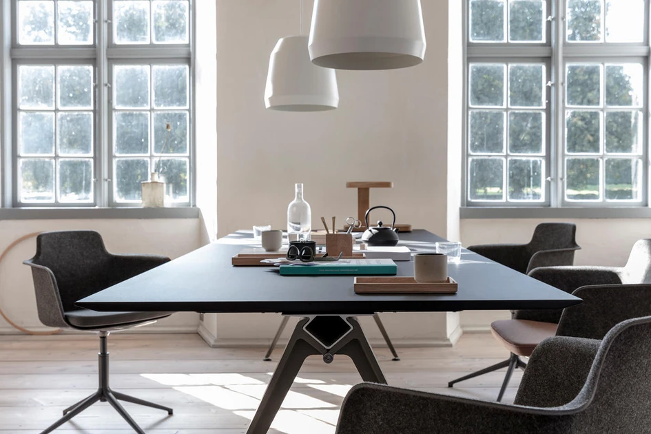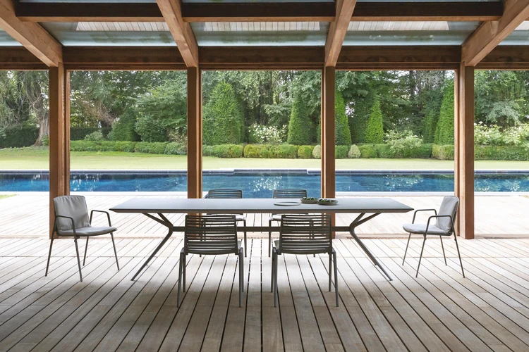 Glass tables like Zanotta’s Reale table have a more contemporary, minimalist look. Reale combines its transparent surface with an enigmatically structural wooden base for added depth and interest while retaining its lightness, exemplifying how a glass table can really make its mark. It can be easy, however, for glass table users to make their own marks in return, every smudge and fingerprint is highly visible, so they demand regular cleaning. With flexibility, functionality and, most importantly, wipeability, aluminium tables like Fast’s Moai provide more informal options yet can still retain a high-quality finish.