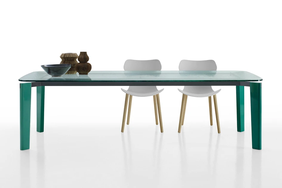 Reale’s transparent surface brings the intricate form of its base into view, whereas users of more opaque table tops can sometimes miss out. Tables with more unique base designs like Tonin Casa’s Wave table can make a huge impact, however, whatever’s above them. Turning the table into a sculptural centrepiece, more intricately styled tables are often better suited to separate dining rooms rather than shared-use spaces.While tables with four straight-standing legs at the corners offer stability and simplicity, they can also restrict the movement, entry and exit of those seated nearby. Alternatively, central base tables like Randers+Radius’ Grip table, with its pitched legs, feature the best of both worlds. Grip provides accessibility and freedom of movement on every side, and with a wide and clean base, ensures stability in both stance and style.