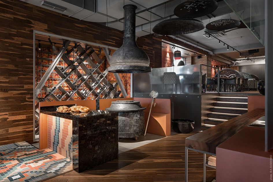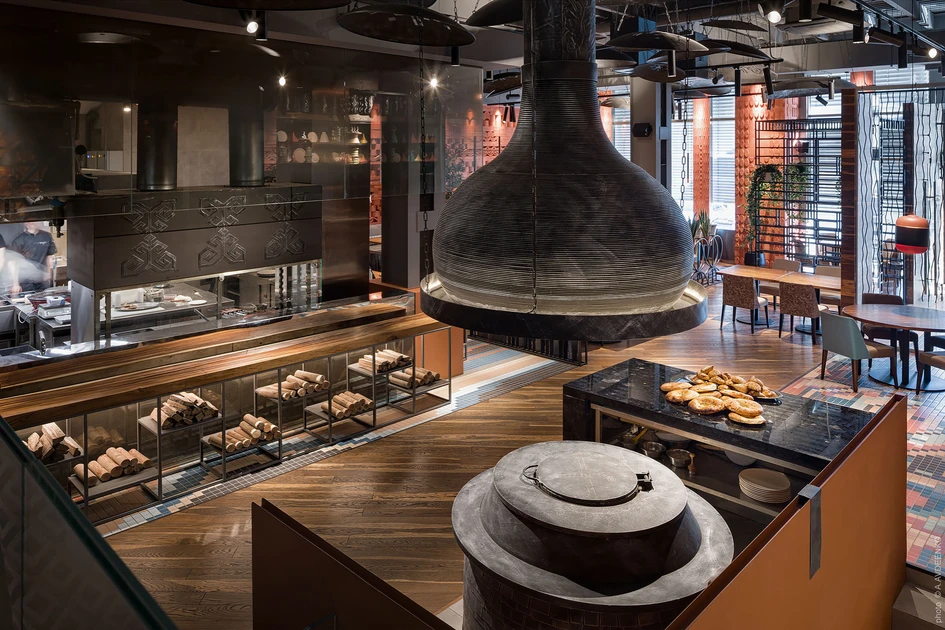 At the part-restaurant, part-cultural museum space of Ukraine’s Ugli Restaurant in Kyiv, customers are not only encouraged to see the traditional cooking processes of the diverse regions of the Caucasus, Turkey, Lebanon and Turkmenistan, but the ‘open-kitchen, barbecue, tandoor and market food showcase inspired by Asian bazaars,’ introduce the project architects loft buro, feature ‘an intriguing way of cooking that allows guests to watch or even participate in the process.’The combination of cultures and traditions at Ugli is reflected in the restaurant’s menu and interior decoration
