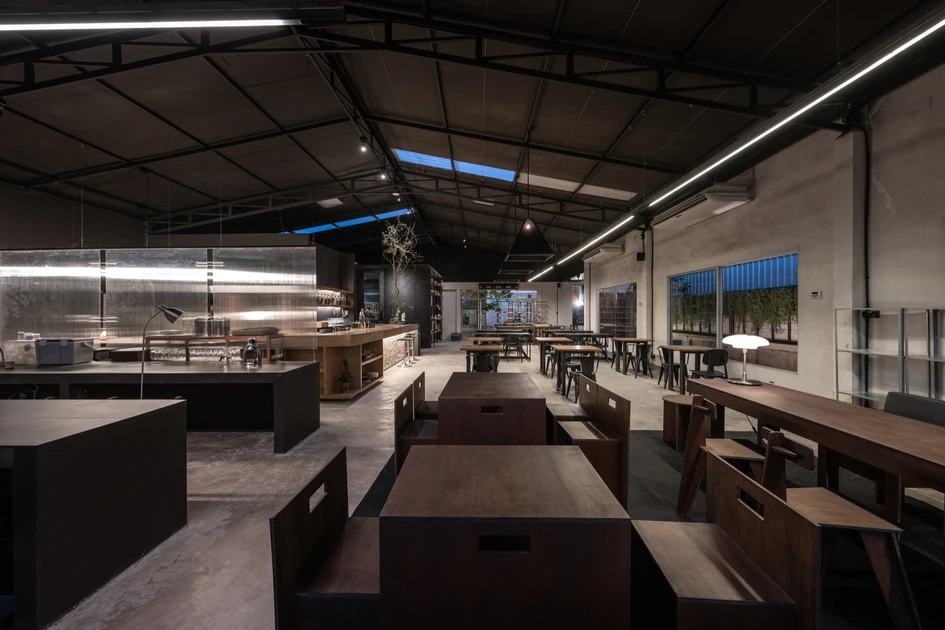 In order to create a relaxed environment for customers to wind down or to escape distractions and lose themselves in the eyes of another, restaurants and cafés traditionally opt to keep the raucous sounds, sights and smells of a stressful commercial kitchen tucked away out of sight. It can be argued, however, that our most relaxing and enjoyable meals occur when they’re eaten with, and cooked by, friends.The open design language intentionally inserted into the warehouse-sized Gimme Shelter Café encourages discussion amongst friends and strangers who soon feel like friends. Set face-to-face with talented chefs whose expertise lies in listening as well as cooking, customers begin to feel at home. Conversations between customers and staff quickly spark a communicative atmosphere, meanwhile, that spills out across the dining table. ‘We hope that our city will have an architecture that is related to the memories of diverse people,’ explain the architects Housescape Design Lab, ‘create overlapping social dimensions and leave some traces of memory in the quality of small, person-to-person conversations.’