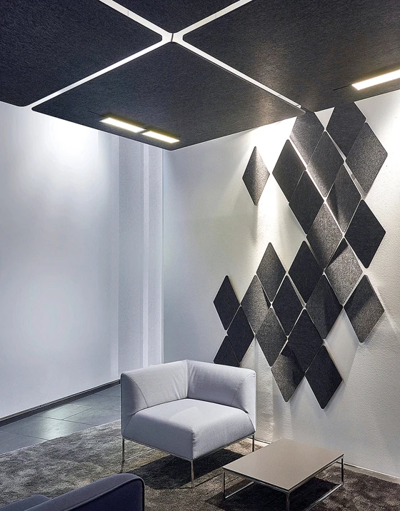 The company’s COLOR FIELDS and WALL COVER panel series shows how technical and design know-ledge can be combined: The modular design acoustic systems combine room acoustics with colour design, thus appealing to the visual and acoustic senses.