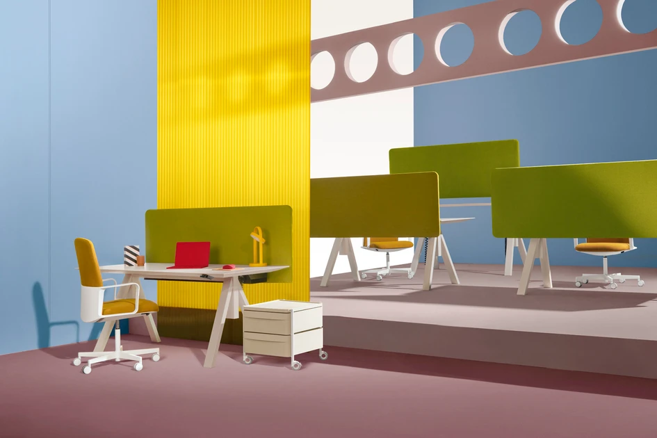‘New reference models and new ways of working’ is how Pedrali describes what its latest cohort of seating, tables and space-diving elements creates. Existing designer collaborations have been leveraged to produce a raft of newcomers to the collection, each of them an extension to an existing product family. From seasoned Spanish designer Jorge Pensi, there’s the ultra-mobile, sound-absorbing Ypsilon Connect space-divider and a new low-back version of his Temps executive chair; while Milan-based Robin Rizzini has developed new sizes for his rational yet friendly Toa table, making its specification possible for an even greater diversity of settings. At the same time, he’s added a new acoustically active, desktop folding screen – a product fit for our socially distanced times.