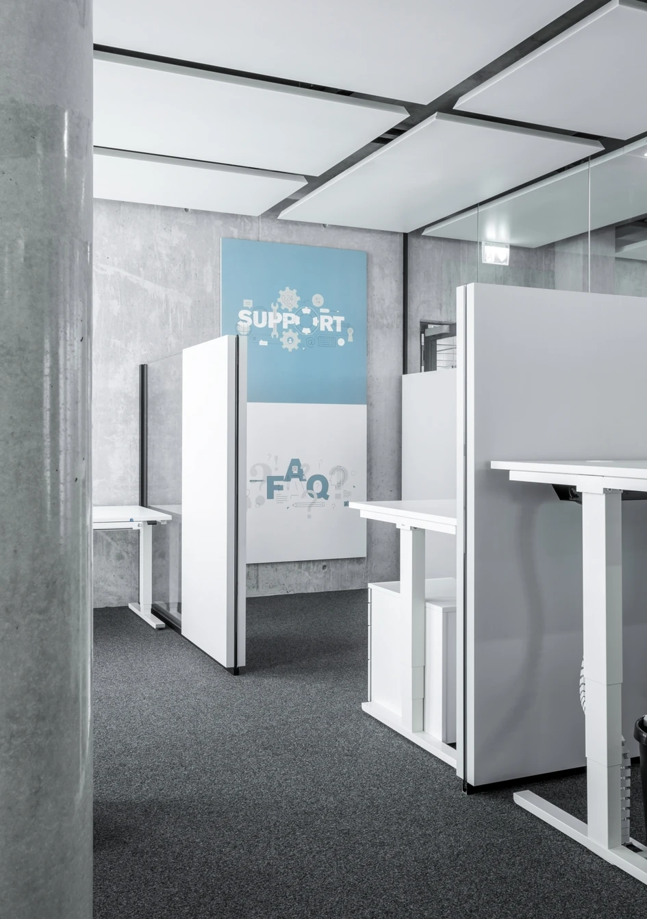 Lindner has developed a new consulting concept called ‘FLEXup Workplaces’. This idea brings together the advantages of the open-plan office and the more traditional single offices. It offers open areas for interactive teamwork, as well as areas where a quieter atmosphere may be required or where a private discussion might be held.