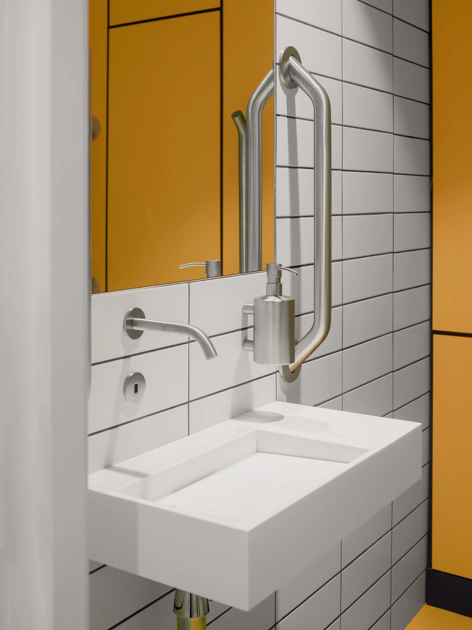 It has, for example, created its own series of Doc M packs (10 in total) to help architects and designers meet compliance goals while maintaining the harmony of materials and design across the space. They target variables such as toilet placement and types of hand drying (hand dryer versus paper towels) and address the degree of mobility (does it need to work for a wheelchair or just make life easier for those with some mobility issues). From grab bars and supports to sensor-operated taps, easy-to-reach soap dispensers and colour-contrasting features for visually impaired users, the design is unified so that necessary functionality doesn’t compromise the overall aesthetics.