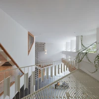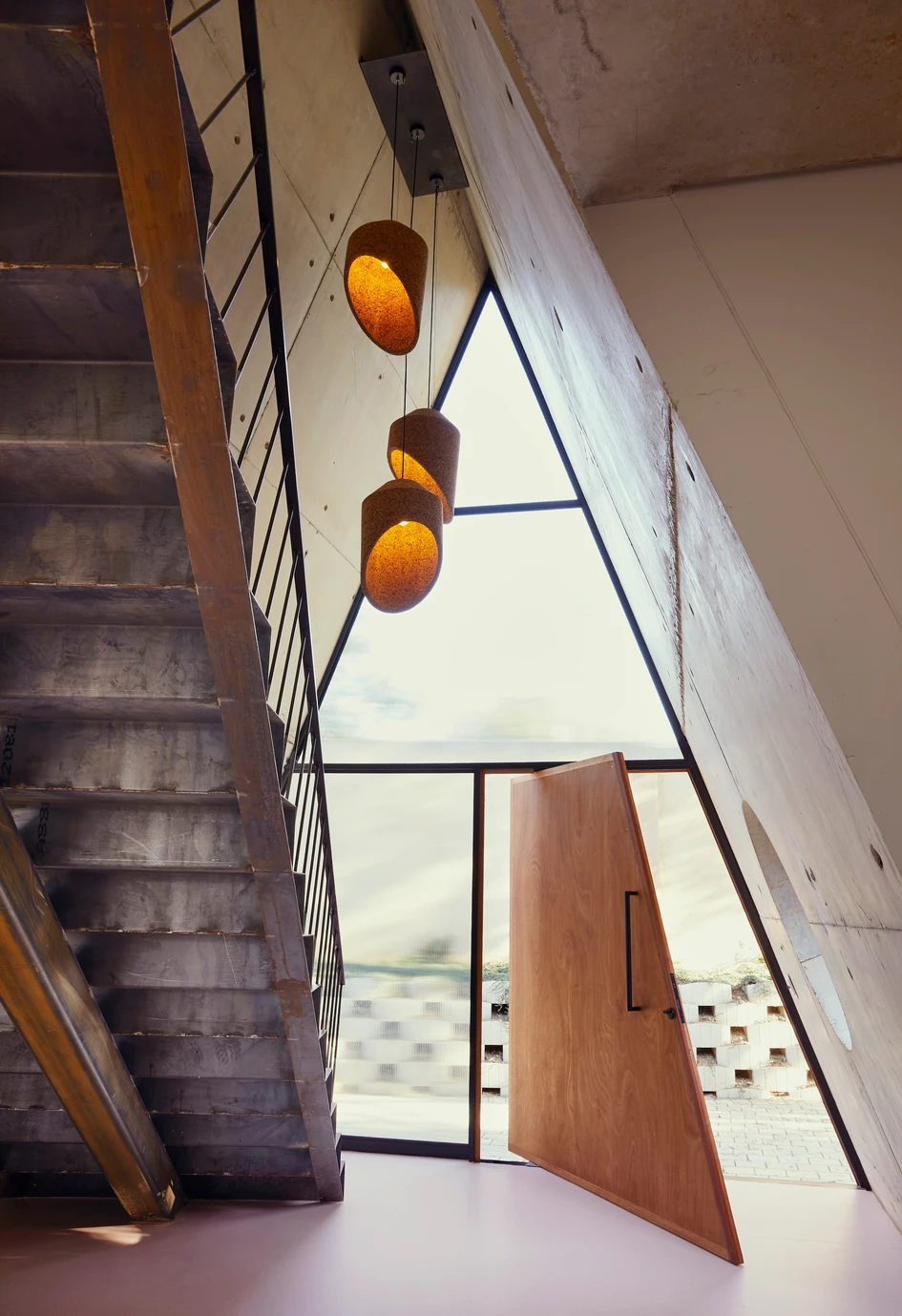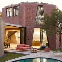 A ‘new diagonal language,’ as the House of Triangles’ architects, Khuon Studio, introduces, is continued in the property’s window forms, ‘unifying the geometric aspect of the project.’ By layering a second floor plan, turned 45 degrees from the first, the studio has created ‘new walls that cross the floor plan diagonally.’ Having drawn triangles all through the interior architecture due to this combined grid layout, they then match the theme with triangles popping up in the structural and decorative surfaces and even as windows, too.The architects incorporated various shapes like triangles, hexagons and circles