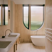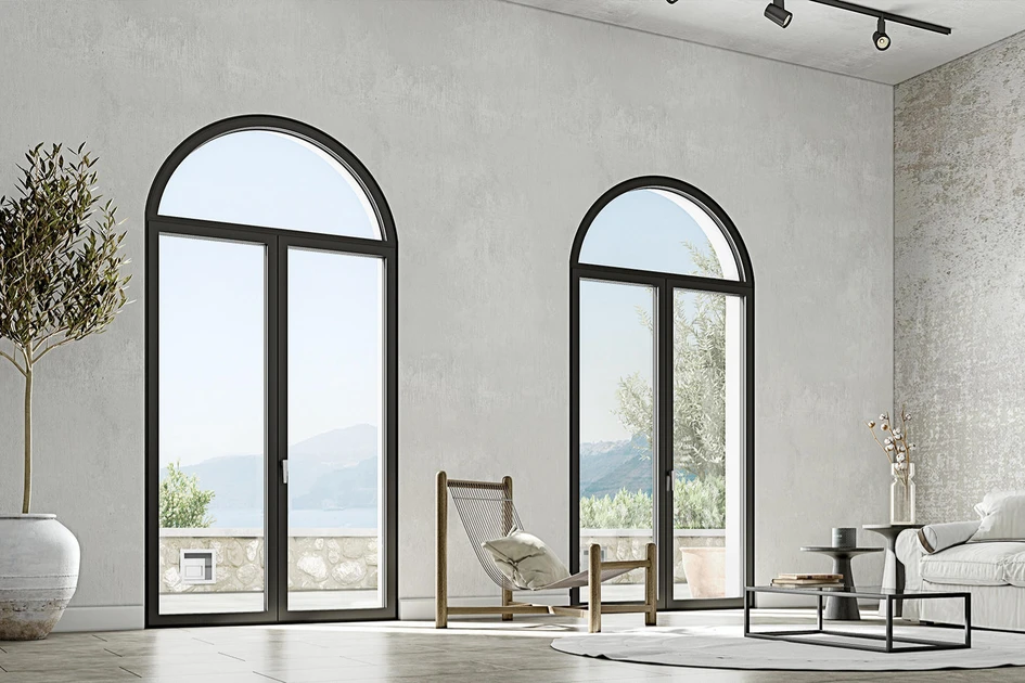 In order to produce the arched window shape, the Jaffa Apartment combines a standard glazed door frame with that of a fixed half-moon window above, like the glazed doorways and windows, Iconic and Essence, from manufacturer Elvial. In order to really turn the aesthetic on its head, however, the Glen Iris House in Melbourne, Australia, inverts the archway form, ‘presenting a sculptural addition to the eclectic streetscape with its abstract facade,’ state Pandolfini Architects.