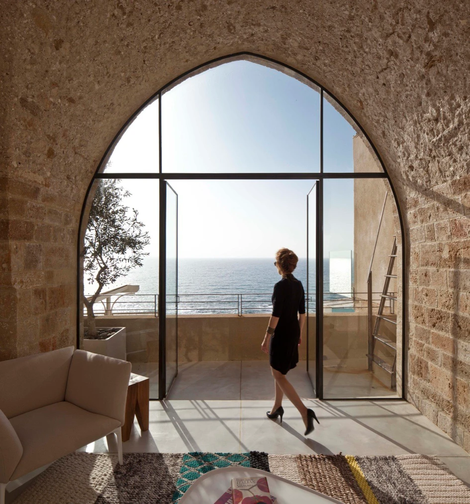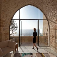 Using a top-pivot hinge, the wide, arched balcony door windows at The Arches housing project in London, UK, were able to half the door’s diameter between outside and in, making the balcony easier to access and the space-defining door better balanced. With ‘many railway arches and bridges crisscrossing the site,’ explain the architects, The DHaus Company, ‘it just felt right to reference the important infrastructure.’Archways are also recognisable features of Middle-Eastern architecture. At the Jaffa Apartment in Tel-Aviv, Israel, Pitsou Kedem Architects ‘restored the structure’s original characteristics,’ for example, using ‘modern, minimalistic construction styles that correspond with the ascetic style of the past,’ as they explain.