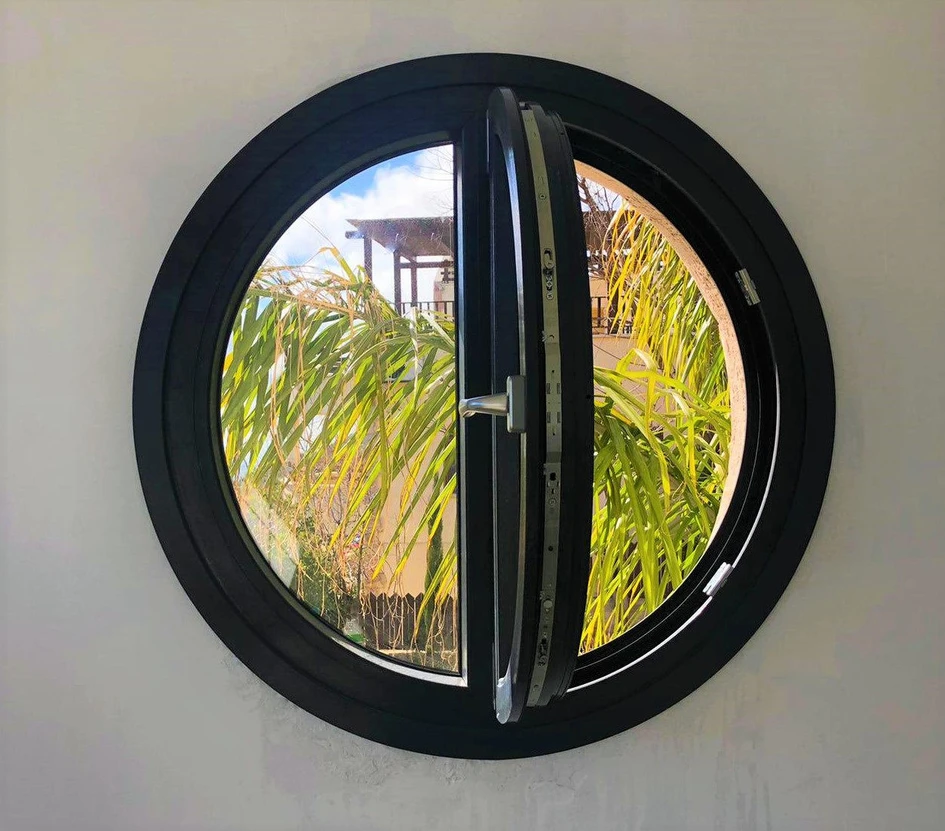 Although circles include no straight lines around their edge, in order to open, window frames need to draw a straight line somewhere. Circular windows like this specially-made one from Kaptain use the straight line across its diameter to pivot the window at opposing sides, providing more efficient ventilation in relation to its size.