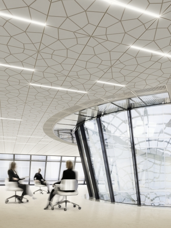 "This kind of architecture has an aesthetic appeal," says Ralf Hansen. "But people also have to be able to use it – so acoustics mustn't be forgotten." Many such projects entirely lack absorption surfaces for sound, resulting in spaces that can be unpleasant for dining or doing business. Hansen is product manager at OWA Odenwald Faserplattenwerk, specialists in acoustically effective ceiling systems. While OWA's core business lies in classic suspended ceilings, the company also wanted to offer comprehensive solutions suited to architecture with an industrial look.