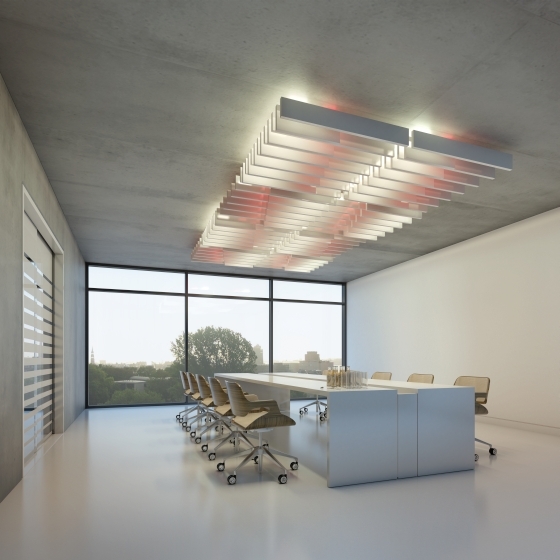 The answer is Corpus, a new series of acoustic modules that seem to float beneath the ceiling. Comprising ten different models in two different height dimensions, Corpus is part of the OWAconsult® collection, developed by OWA in concert with the Hamburg architect Hadi Teherani. For a project in the Middle East, Teherani sought alternatives to conventional ceiling systems. Unsatisfied with what he found, he contacted OWA with the idea of developing something new. This gave rise to a collaboration that has been ongoing since 2012 – and to a range of unusual and high-quality acoustic products.