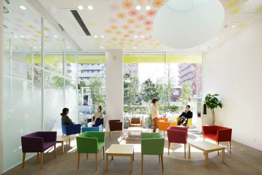Banks can be stressful places, where customers’ futures and livelihoods hang in the balance. Waiting areas and consultation rooms are awash with anxiety as hopeful or fearful occupants nervously learn their fate. Tasked with the redesign of four separate branches of Sugamo Shinkin Bank in Japan – Tokiwadai, Nakaaoki, Shimura and Ekoda – Emmanuelle Moureaux Architecture + Design developed an interior and exterior design concept based on nature, with expressive colours, greenery and access for natural light and air, thus responding to the bank’s brief to ‘provide first-rate hospitality to its customers in accordance with the motto: “we take pleasure in serving happy customers.”’