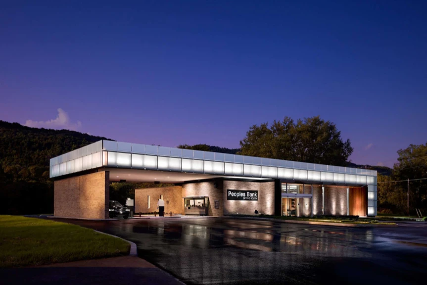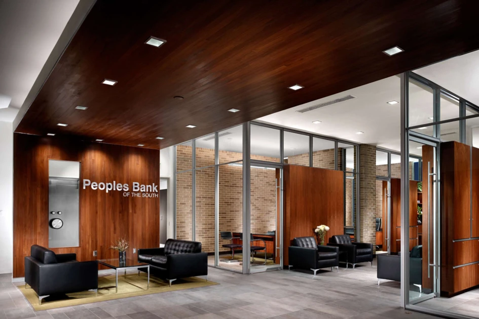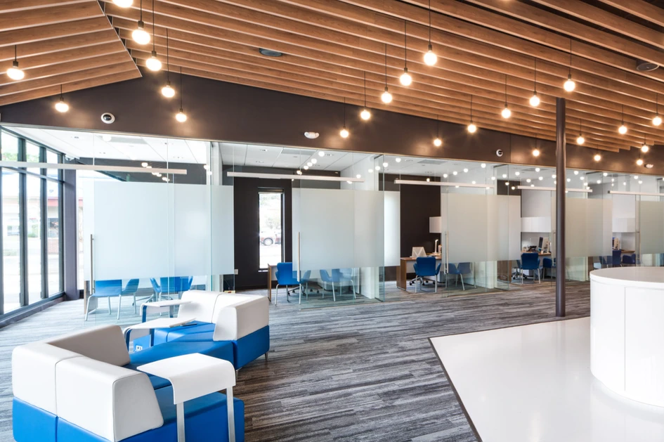After moving the bank closer to the corner to create a more approachable presence on the street, Renasant Bank in Memphis Tennessee, US, split its interior into three distinct zones, each specialising in different types of financial service. The restructure developed stronger banker/client relationships as ‘Universal Banker’ staff were able to lead customers through each step in turn.Renasant Bank split its interior into three distinct zones, each specialising in different types of financial service