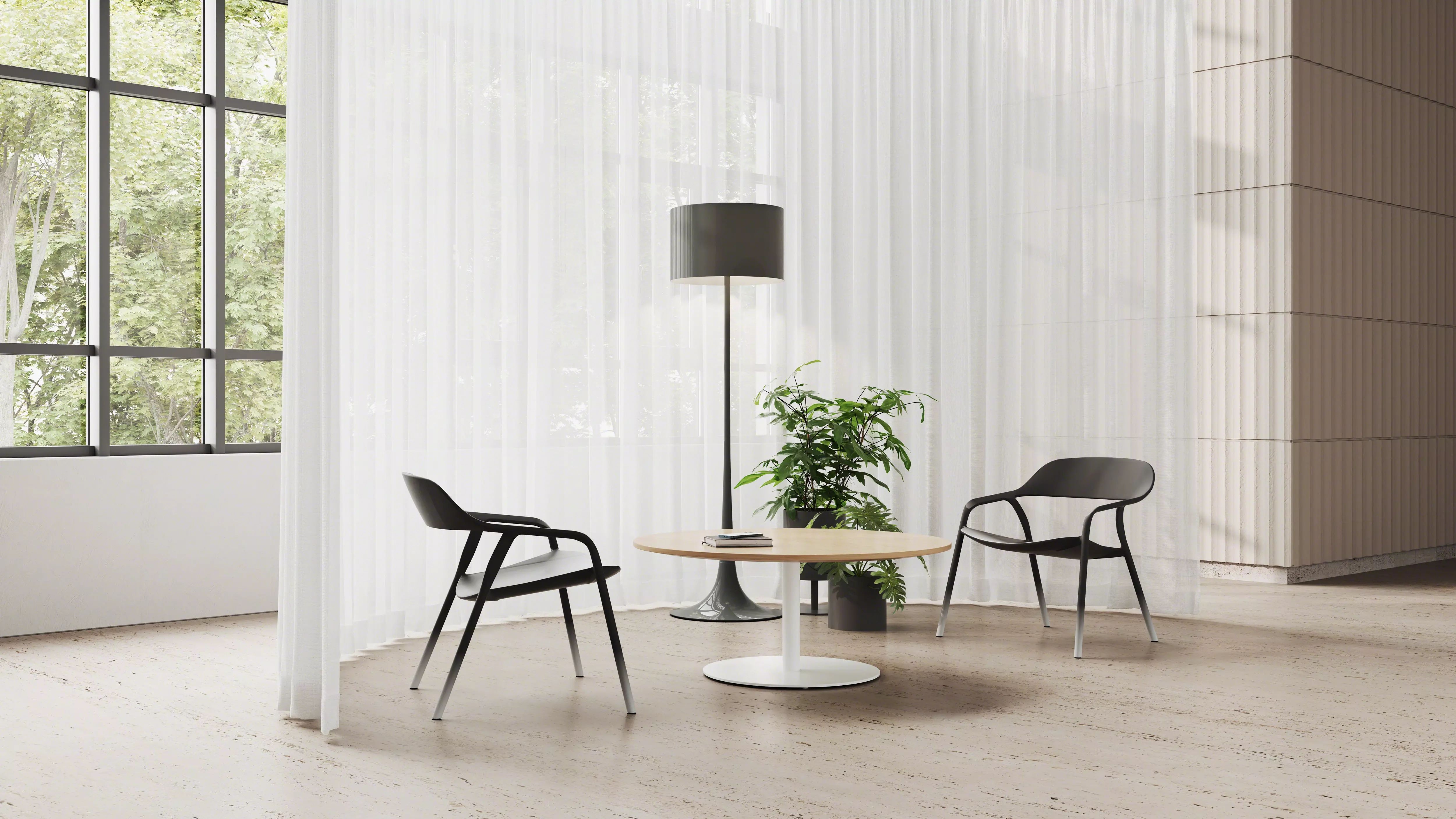 The LessThanFive™ Collection now embraces all types of on-the-fly transitions in the workplace: stack four chairs and carry them across the room with ease in seconds; slide a stool from desk to kitchen counter; or smoothly reposition the comfortable lounge chair closer to a social gathering.