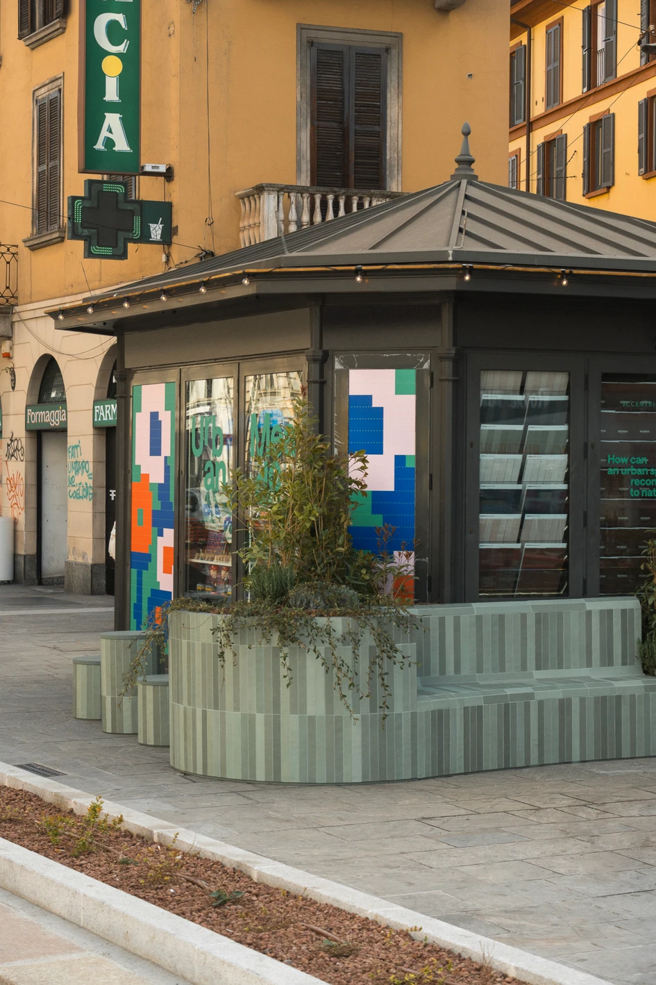 The newsstand, a symbol of urban culture, is thus transformed into a multifunctional green island, inviting visitors to rediscover the relationship between design and the environment with inclusive and accessible spaces. It turns a corner of the city into a sensorial and immersive experience.