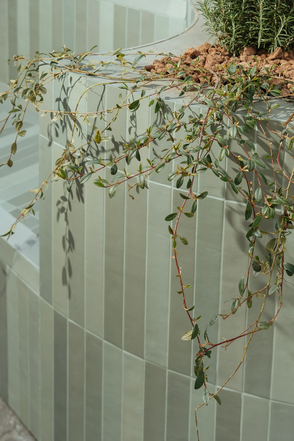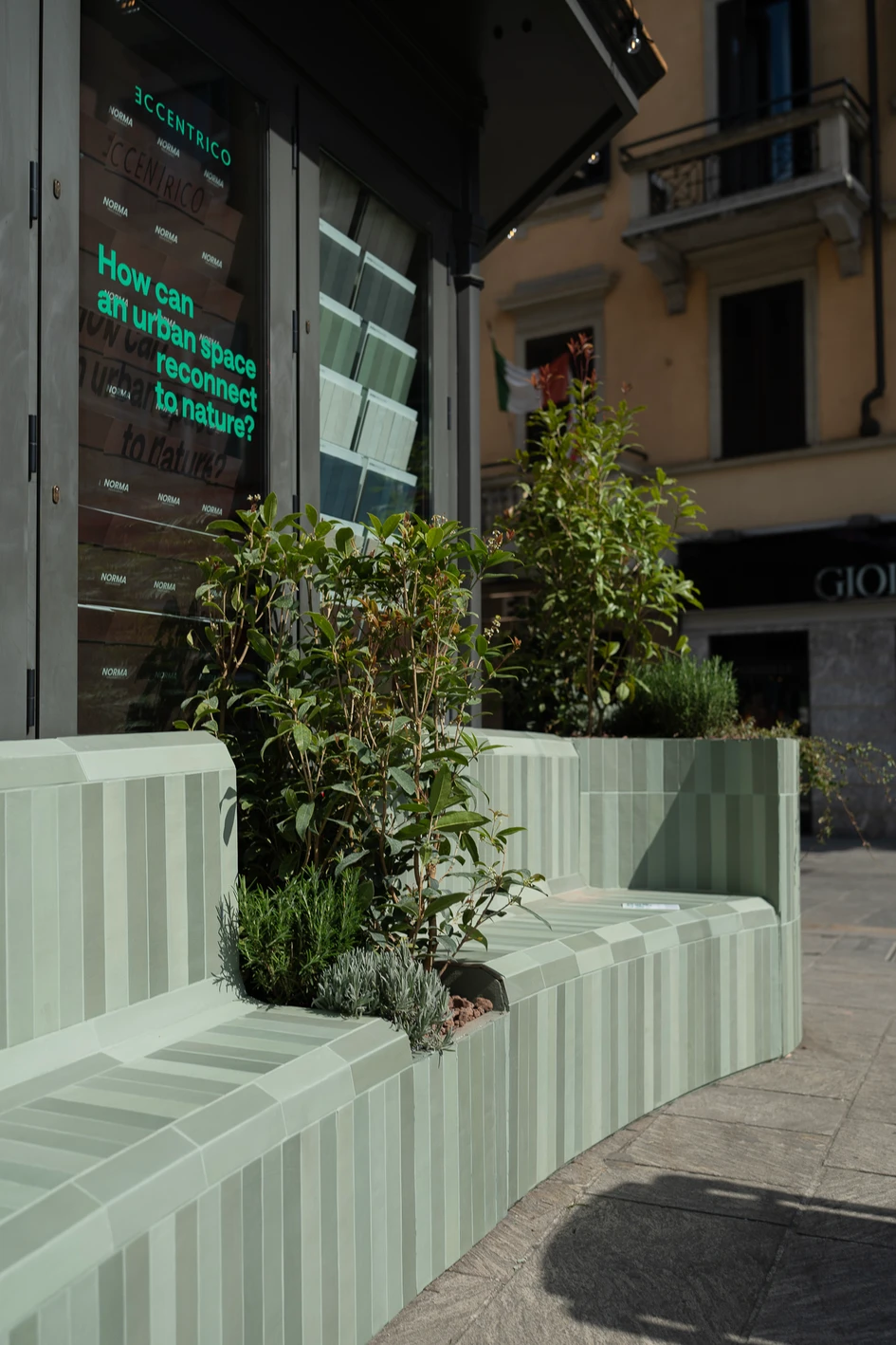 Urban Meadow was created as a place of connection between people and the metropolitan landscape, an installation that expresses the growing interaction between sustainability and innovation in urban contexts. Through the vibrant shades of green and the strong materiality of the NEO collection, the feeling of a city meadow is recalled, reinterpreting in a contemporary way the idea of public space as an area for meeting and sharing.