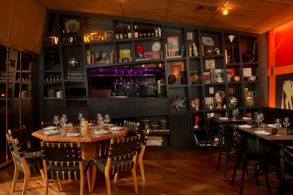 Ella Funt makes its theatricality known even to passersby, who can't help but spot the restaurant's dramatic interiors through its oversized street-side windows