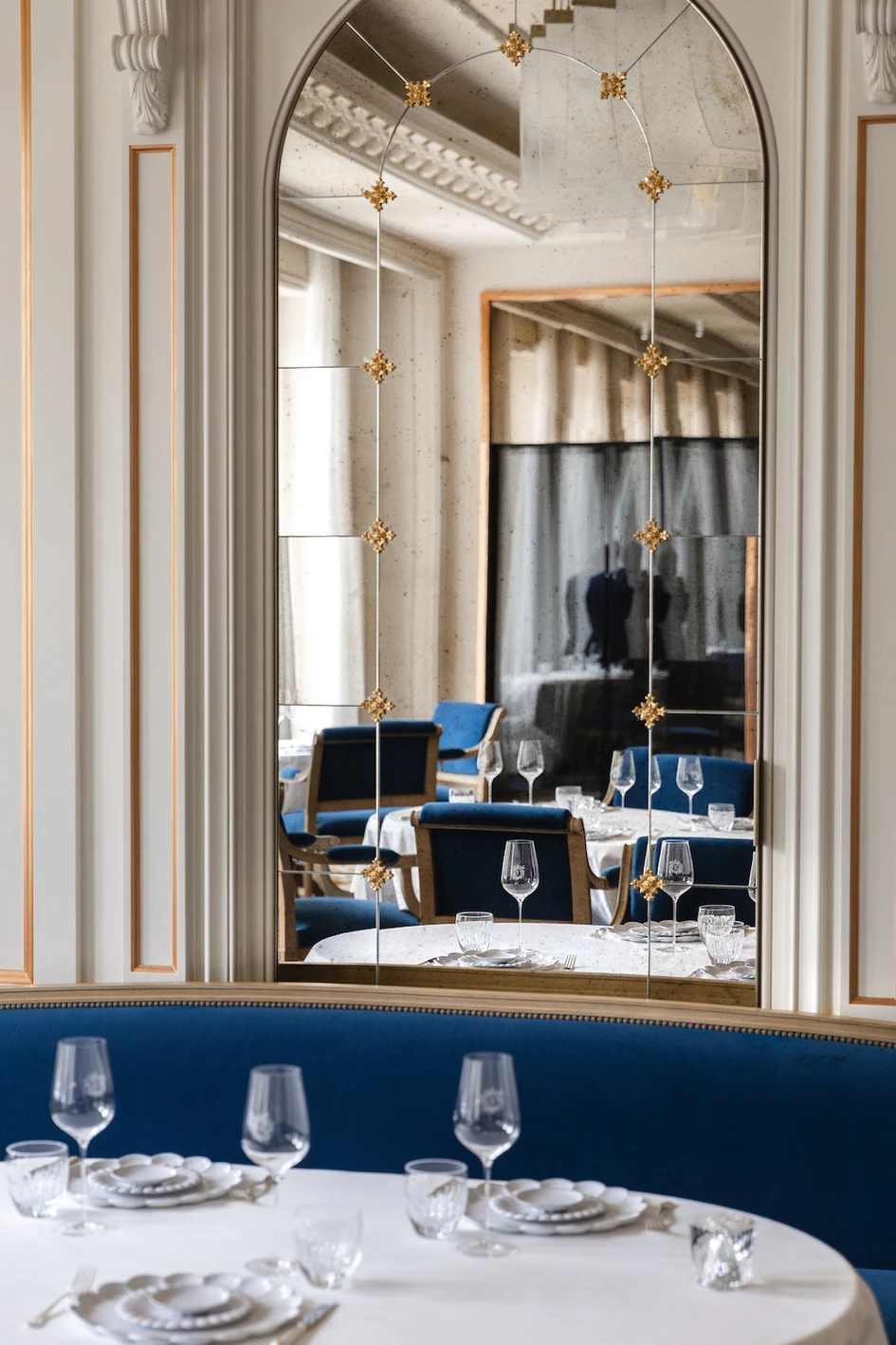 Change was afoot last year at the French capital's iconic Ritz. Its Espadon restaurant not only moved (back) to its original 1950s location, but also appointed its first-ever female chef in Eugénie Béziat. The new spatial design is heavily influenced by Béziat's personal history, and even before entering the intimate dining room, patrons are immersed in her love of nature through a hallway with a dimly backlit relief of wax rhubarb leaves by artist Mona Oren.
