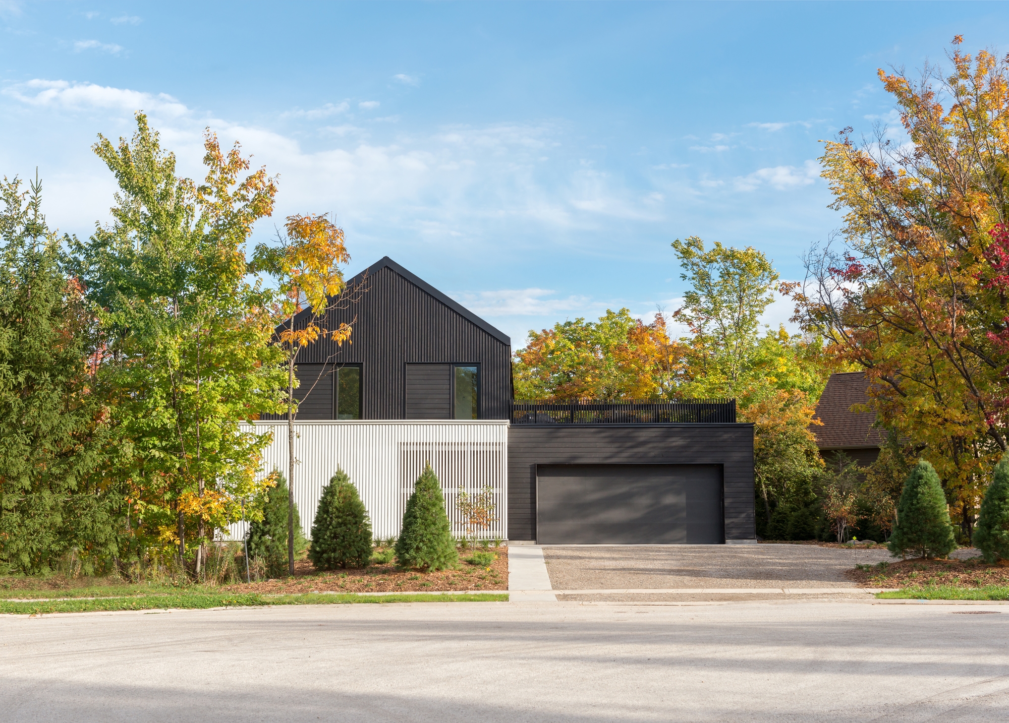 Alta Chalet is designed as a year-round weekend retreat for a family of five, comprising 3,000 square feet of efficiently planned living space spread over two storeys. Located near the end of a cul-de-sac in a private ski club development, the chalet optimizes the scenic and recreational opportunities afforded by the Blue Mountains, a town in Grey County located two hours northwest of Toronto. Tucked between a protected ravine and the Niagara Escarpment, the site is characterized by an abundance of deciduous and coniferous trees which, in summer, offer welcome shade and privacy.