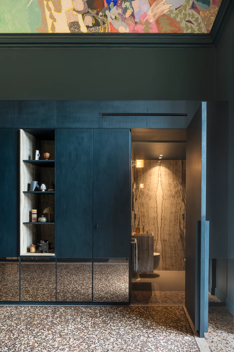 In the dining area and bathrooms, all the versatility of marble’s expressive potential unfolds, with surprising colours and refined cuts. In the bedrooms, different spatial solutions are experimented and defined, through the design of an articulated system of custom-made furnishings.