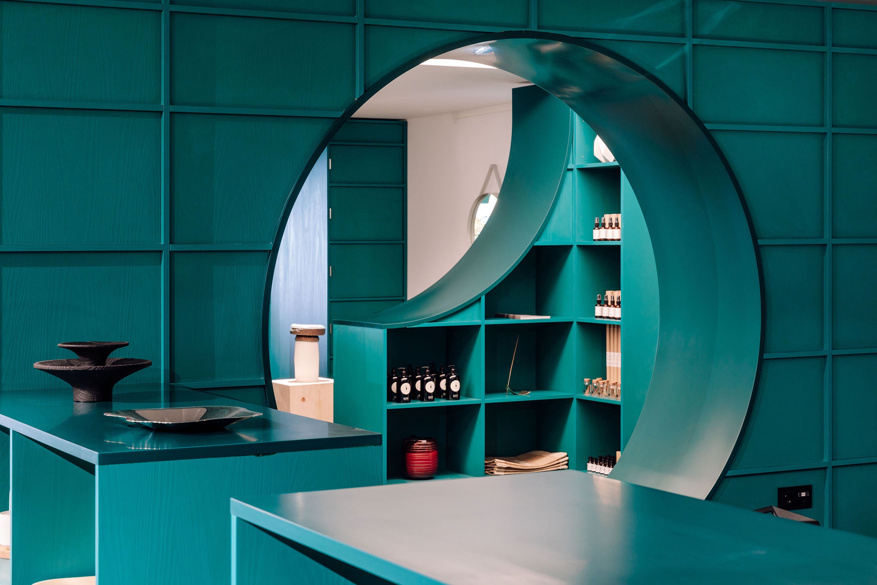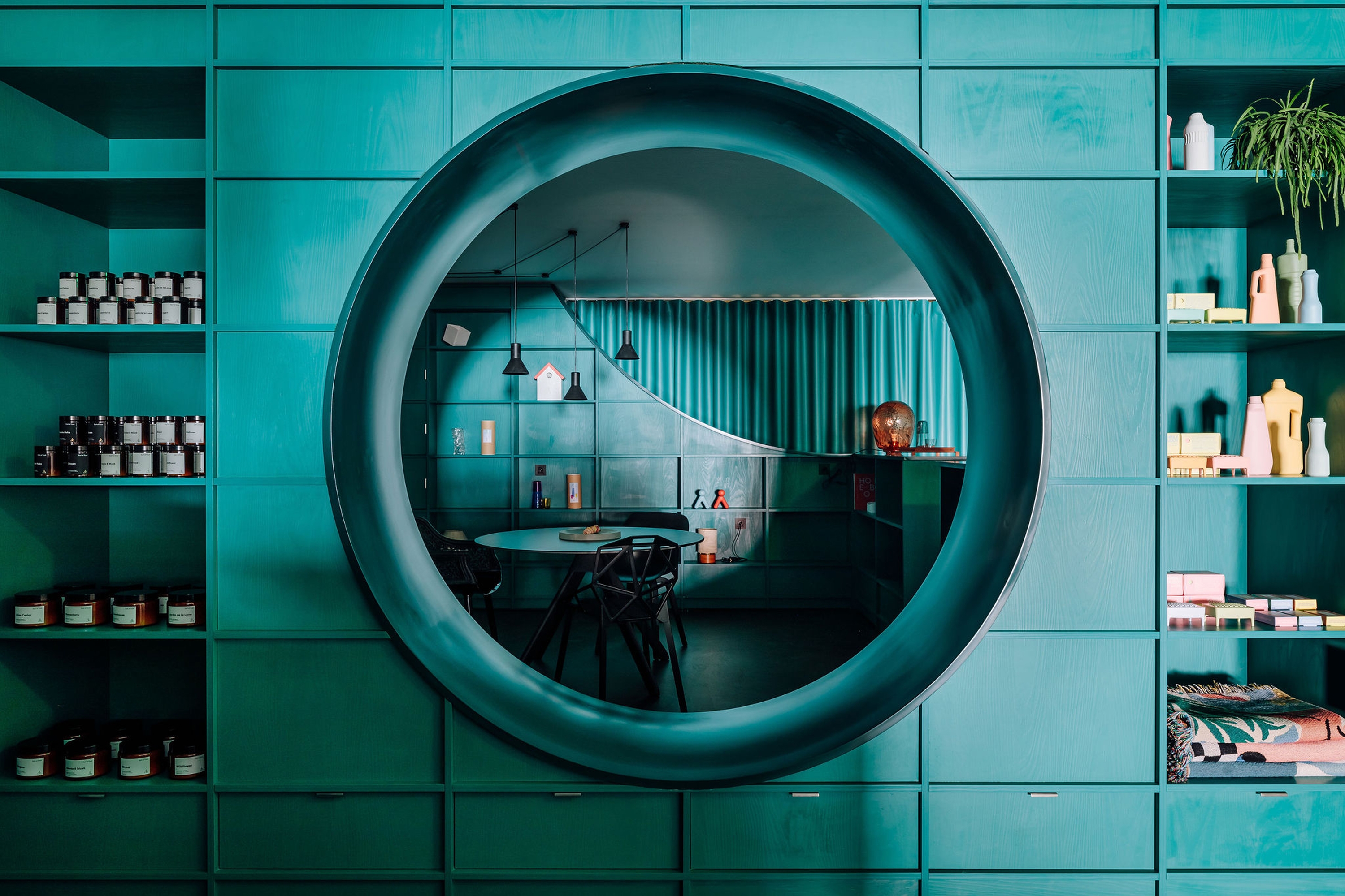 The Banema concept store was designed to be a materials showroom and a design products store, in a single space that shares two very different activities with different products, rhythms and customers. The space is organized along a piece of furniture that meanders through the space, designed from a module that is repeated, creating areas for sharing both activities, meeting spaces and exhibition niches. The showroom’s display wall is continuous and takes advantage of the entire fulfillment of the store, allowing flexibility in organizing and the disposal of large products.