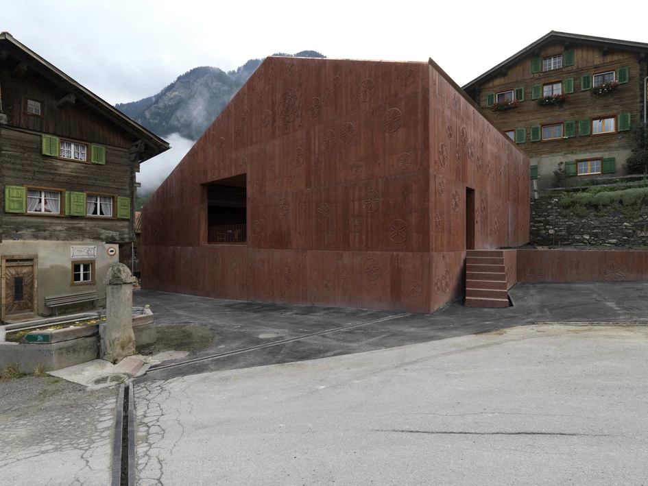 The Bardill Studio building has replaced an old barn in the protected centre of the village of Scharans. Building permission was granted by the local authorities on the condition that the new building would have exactly the same volume as the old barn.