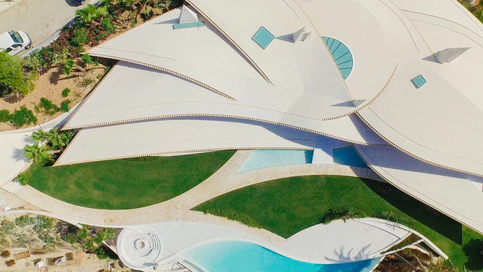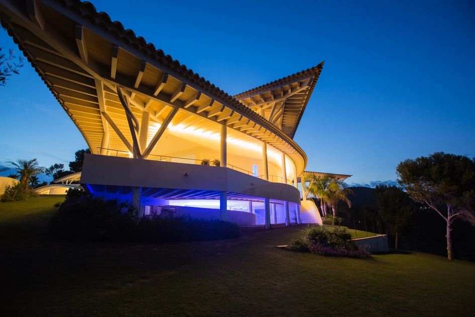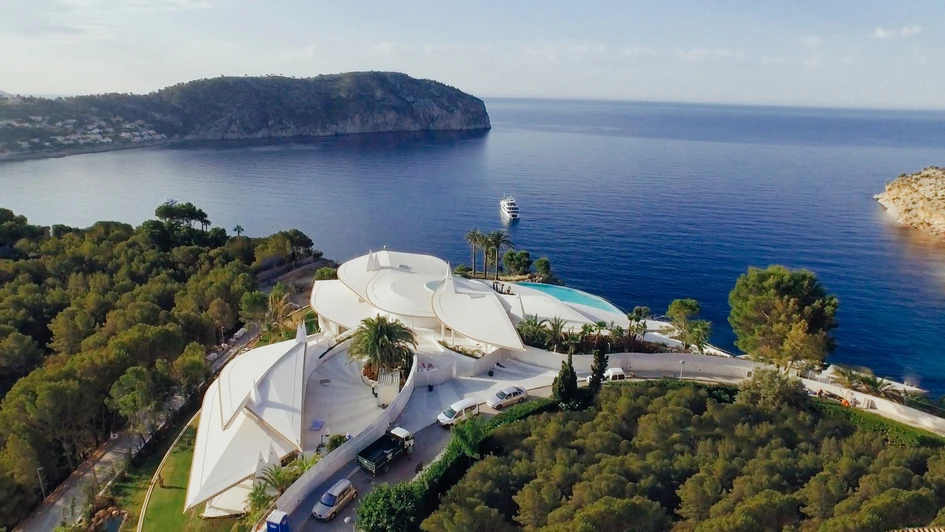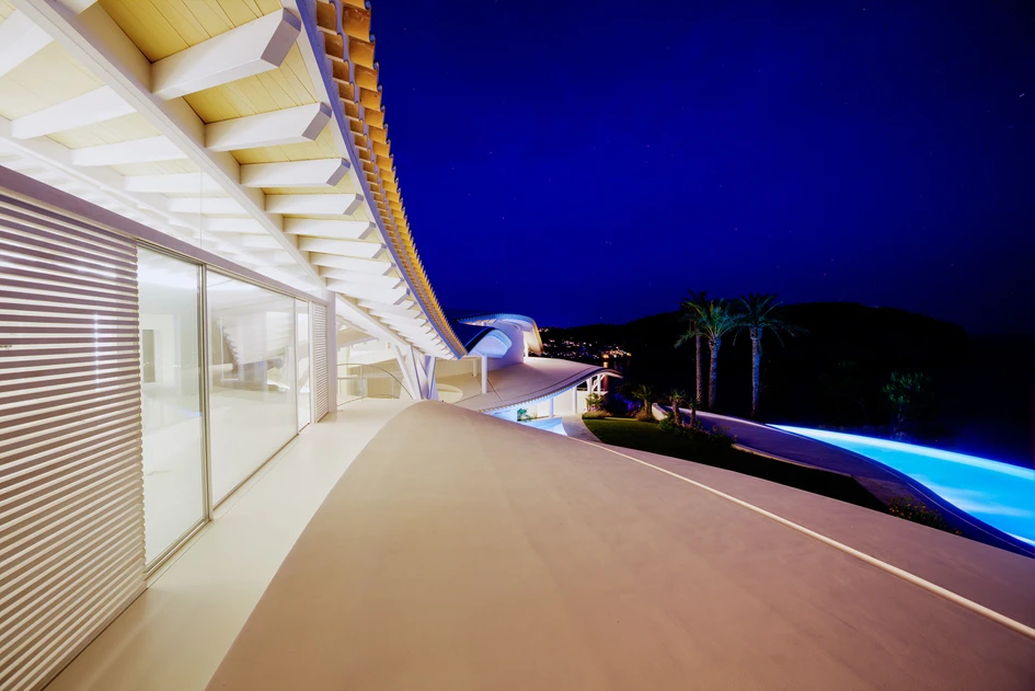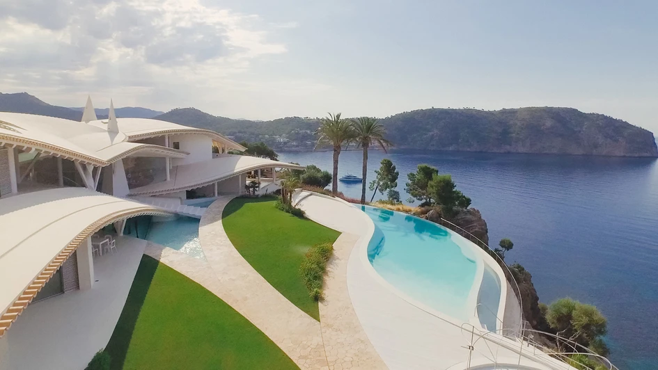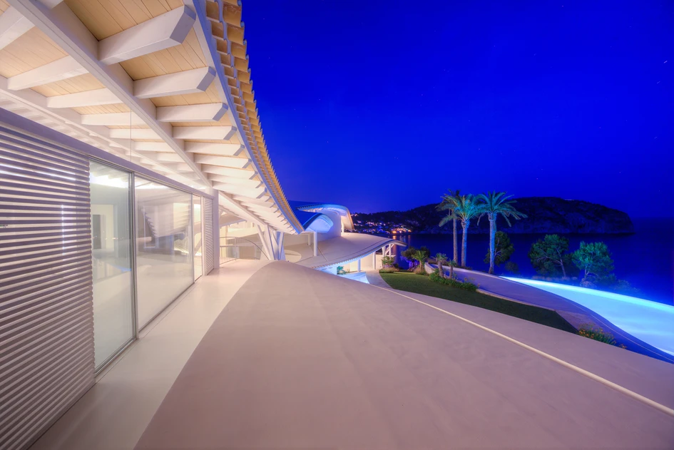 Cette extraordinaire villa située à Majorque est l’un des chefs-d’œuvre d’Alberto Rubio. Les toitures blanches et les ondulations qui s’harmonisent avec la mer, la côte et le ciel environnants comptent parmi ses thèmes favoris. Autant d’éléments qui sont de véritables icônes sur l’île. La maison impressionne tout le monde par ses larges courbes, ses vastes espaces intérieurs dénués de séparation et ses plafonds voûtés aux poutres apparentes. La maison compte cinq chambres à coucher, un espace de fitness et un sauna. L’espace extérieur présente des terrasses arrondies, une grande piscine à débordement ainsi qu’une salle à manger et une cuisine extérieure. Difficile de déterminer ce que cette maison a de plus admirable : Son élégance ? Sa beauté ? Ou bien l’atmosphère de rêve qu’elle dégage et qui offre de multiples sensations ? Le propriétaire de cette maison unique est non seulement fier de cette fantastique propriété majorquine, mais est également conscient de posséder un véritable chef-d'œuvre architectural.