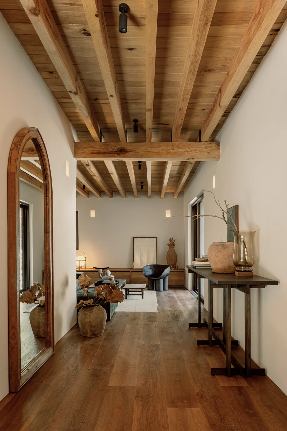 Casa Cedros is one of the most recent projects for the studio and undoubtedly encompasses entirely Aagnes's aesthetic. The house is located in Tapalpa, a town in the southern mountains of the state of Jalisco, in Mexico. The architectural project was design by Sergio Ortiz, a renowned architect who has taken up from his own voice the most outstanding elements of the so-called Tapatío School of Architecture (also known as Mexican Regionalism with its origins in Guadalajara). In his work we not only find references to Luis Barragán, Rafael Urzúa or Pedro Castellanos, but also a genuine appropriation of what has marked Mexican Regionalism: chiaroscuro that detonate new spaces, the use of local and brute materials such as cedar and black quarry, and perhaps one one of the greatest successes of this artistic movement: the patio as a leading element.