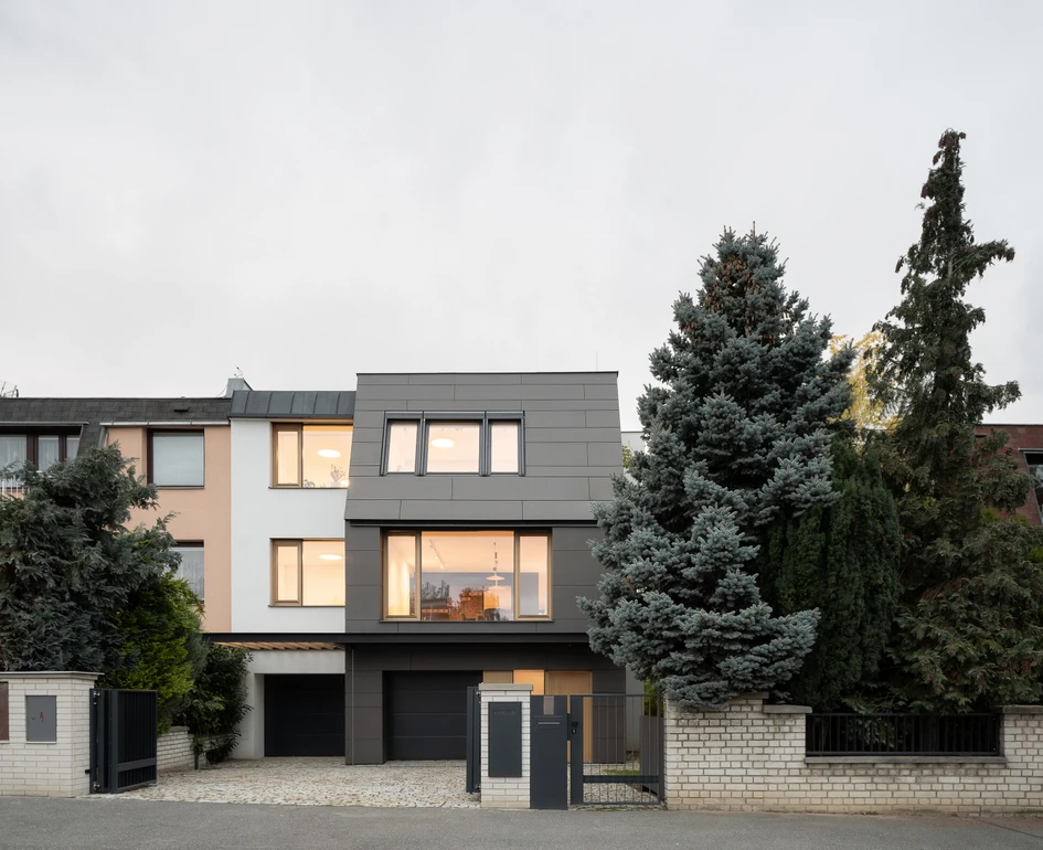 The reconstruction of a terrace house for the needs and comfortable urban living with the current standards for a family. The same terrace house design repeats in a few streets, using pseudo-mansard roofs, partial prefabrication, and materials from the early 1990s.