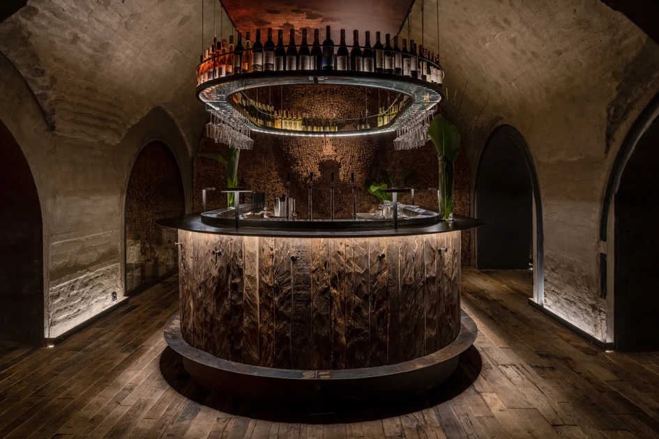 Massive steel doors that look like the freezer doors hide the stairs that lead down to a bar. To be more specific, there are two bars inside Deep. The first one is a wine bar with a chamber-like atmosphere and a high vaulted ceiling. The second one is a mixology bar with lounge seats. Also, there is a smoking zone, a hookah zone, a partly opened kitchen, and a DJ place.