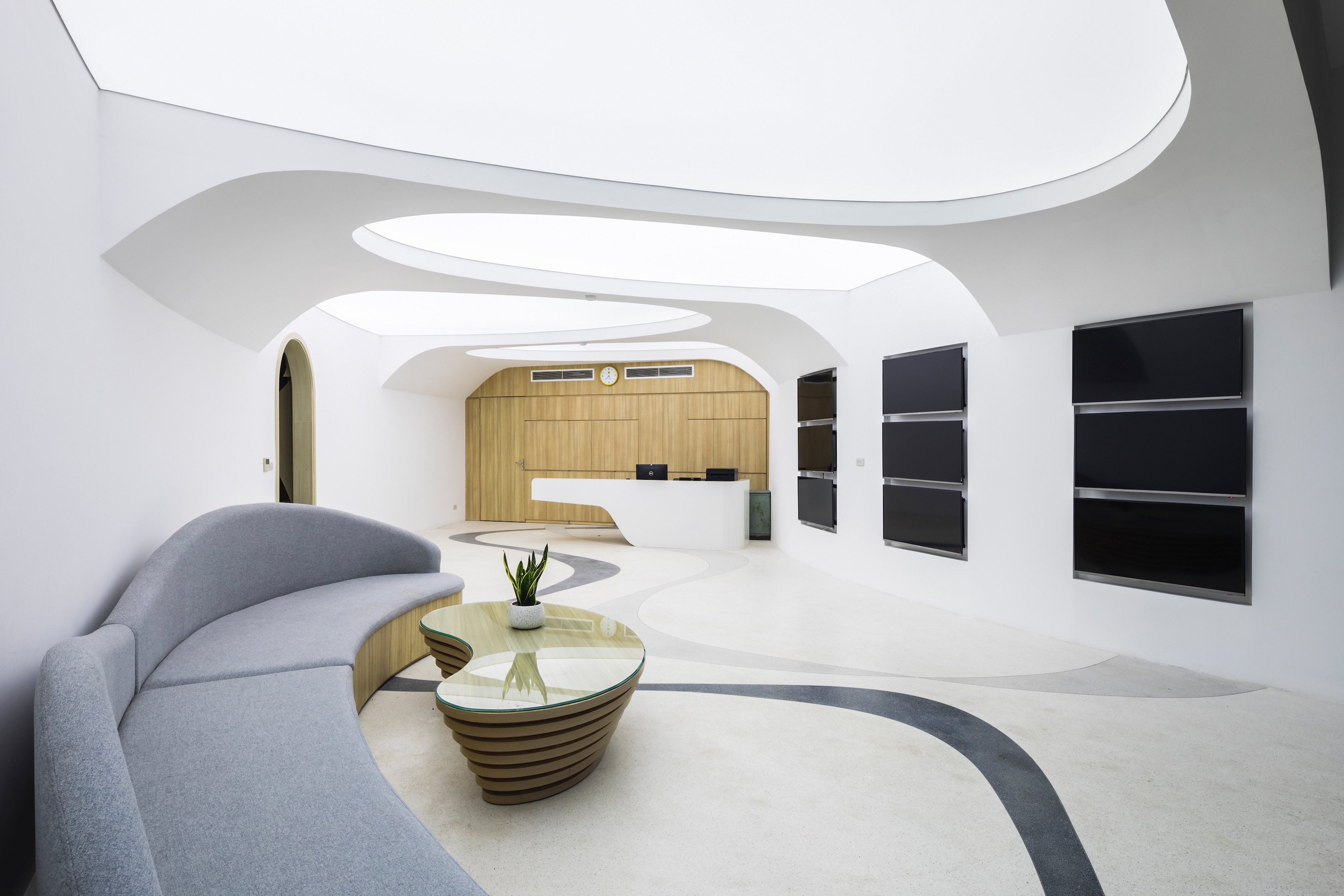 The buildings are contextualised with the scale of the surrounding urban landscape. The curved shapes allow views of the adjacent Goong Lake to be maximised, connect the indoor spaces with each of the differently focussed courtyards, sparking curiosity to explore the playgrounds.