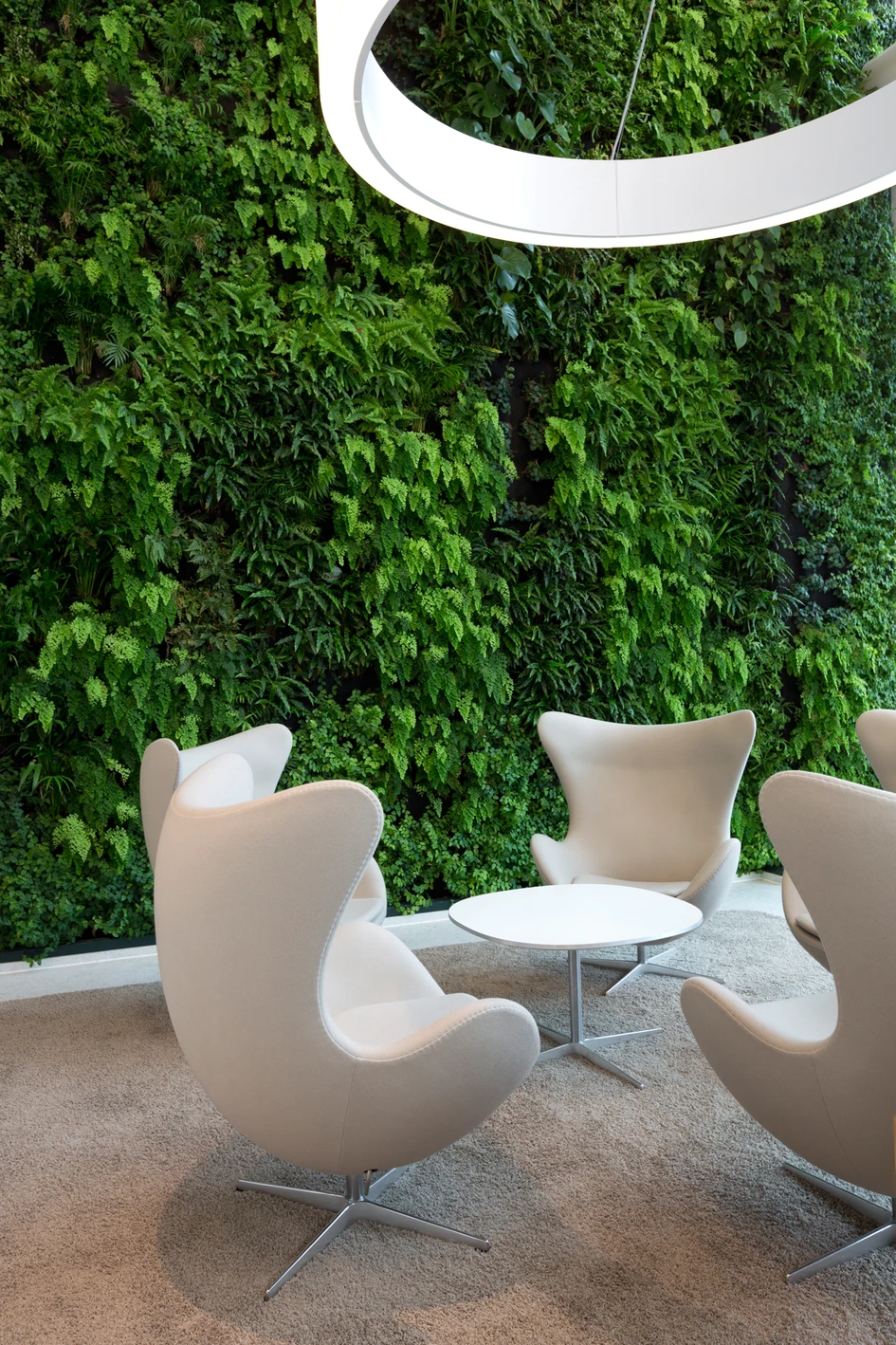 And, on top of everything else, there’s more oxygen to breathe to keep employees healthy and alert, courtesy of the fact that the green plant walls on the outside actually make their way inside at the third floor, bringing the natural world into the built world.